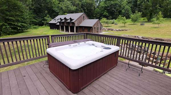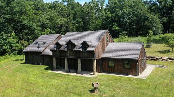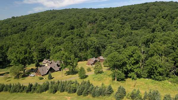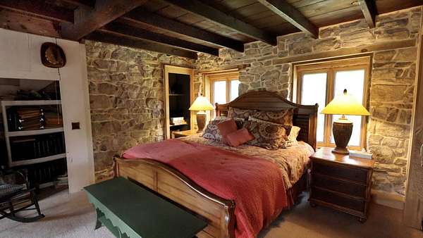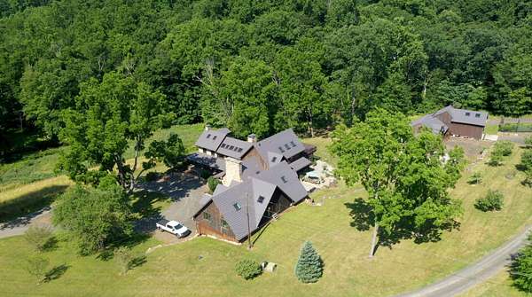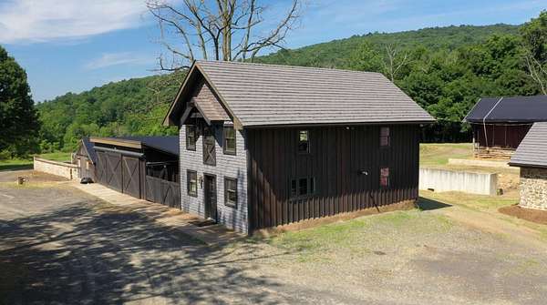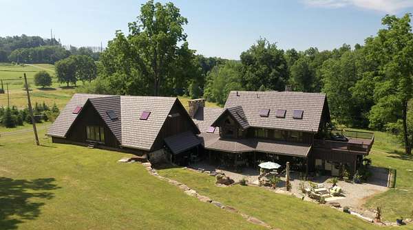 Welcome to Water and Wings the historic homestead of Theobald Mechling and the oldest homestead in Lehigh County, Circa 1730. The original land grant was signed by the sons of William Penn; imagine living on a homestead that was created 40 plus years before the Declaration of Independence was signed! Boasting 214 acres of rolling hills, scenic mountains, pastures and a native trout stream all in your back yard! Wake up to turkeys gobbling, deer browsing, fox, raccoon, bear, birds of prey including our annual visiting Golden Eagle and the soothing sounds of Walters Creek! Whether you enjoy bird watching, maple syrup collecting, camping, hunting or fishing this property has it ALL! Privacy; yet 60 minutes to Philadelphia, 90 minutes to Manhattan, minutes to Bear Creek and Blue Mountain ( ski and spa resorts), the Philly Airport, upscale shopping, dining and more. The homestead includes 3 homes, a Carriage house, Barn and many outbuildings, most of which have been restored. The main house is 7,500 square feet of impeccable open concept design including beams, flooring and trim made from wood on the homestead; cut on a portable saw mill. Extensive stone work and a 5' x 5' through wall walk in fireplace that can be viewed from all rooms on the first floor. Professional kitchen with a wood fired pizza oven, GE professional appliances and a mud room with a large pantry, extra freezers, and refrigerators and a newly designed full bathroom with capability of an extra washer and dryer just waiting for finishing. Furnishings include custom forged sconces, chandelier and light fixtures. Skylights throughout the home bring the outdoors in along with wrap around porches and custom decks all of which highlight the views of the outdoors; add to this custom-made spiral stairs and balcony railings from tree/branches and this makes for one of a kind never before seen home.