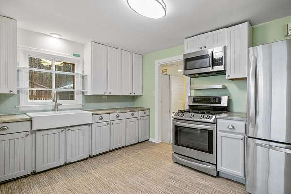 Welcome to this one of a kind lakefront retreat nestled along the beautiful shores of all-sports Stony Lake. Set on 2.6 acres with over 200 feet of pristine lake frontage, this retreat offers entertainment space, comfort, and endless opportunities to enjoy the best of lake living. With about $50,000 in recent renovations, the main home has been completely updated from ceiling to floor; and also features a new HVAC system and on-demand water heater for added peace of mind. Inside the main home you'll find 2 bedrooms (w/ large primary suite), a full bathroom and a bright open-concept layout designed to capture stunning lake views. Beautifully re-finished wood floors run throughout, and every room has been freshly painted with new trim, creating a clean and inviting atmosphere! Step outside onto the newly built deck and take in the breathtaking views of Stony Lake, surrounded by beautifully maintained grounds. Adding to the appeal is the studio like apartment above the attached garage This private upstairs suite includes a bedroom, full bath and kitchen--perfect for hosting guests. For those needing extra storage or space for recreation, the impressive 30 x 40 pole barn features extra-tall doors for all your toys! Included in the back is an additional bedroom, full bath and kitchenette, offering even more flexibility. Both garages are equipped with Pellet stoves allowing for comfortable, year-round use. Whether you're searching for a serene getaway or the perfect place to create lasting memories, this exceptional lakefront retreat is truly a must-see. Come experience the beauty, space, and lifestyle that Stony Lake has to offer. Call today for your private showing as this lake beauty won't last long!