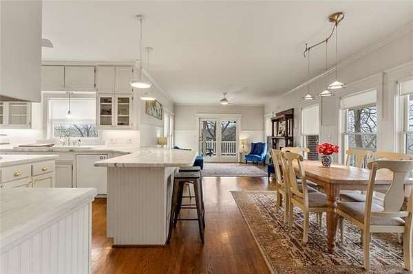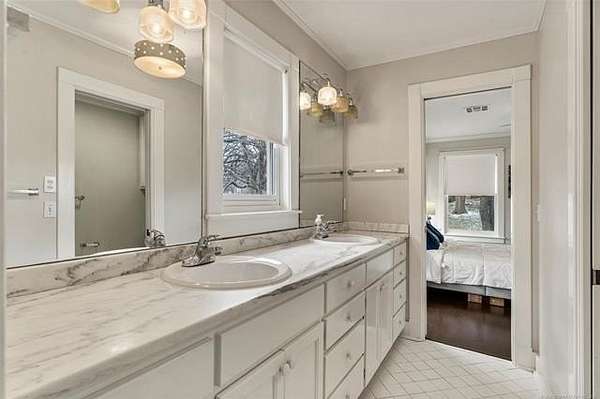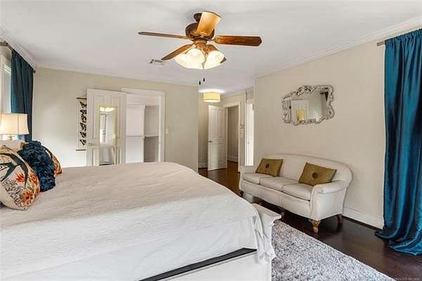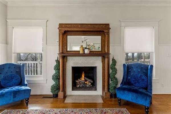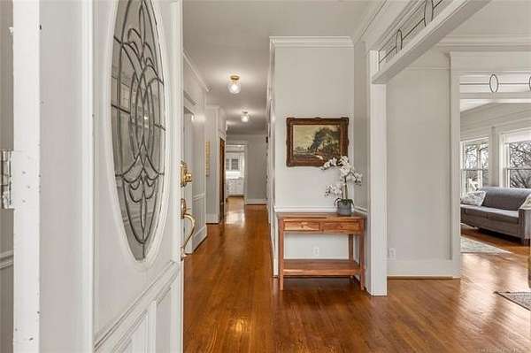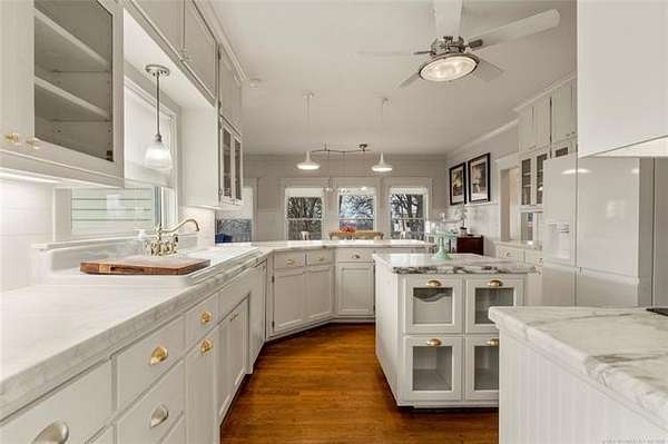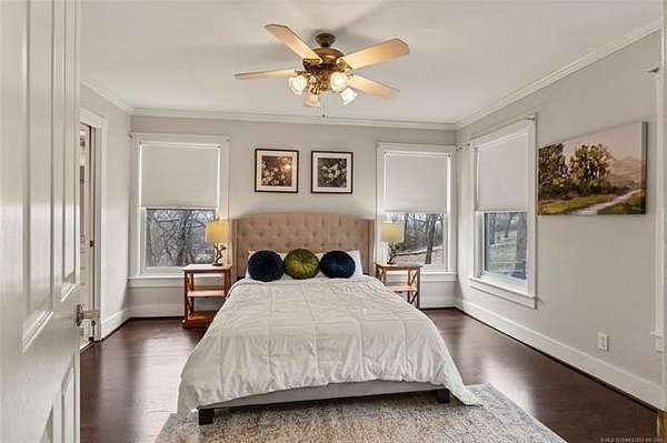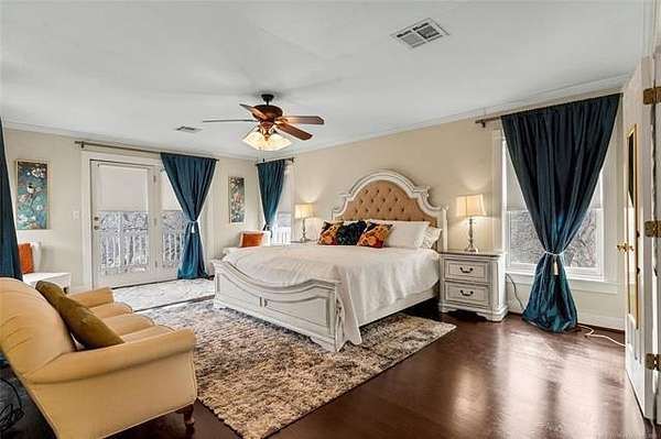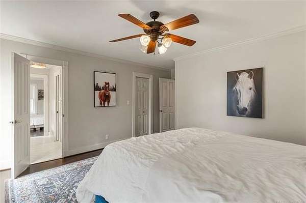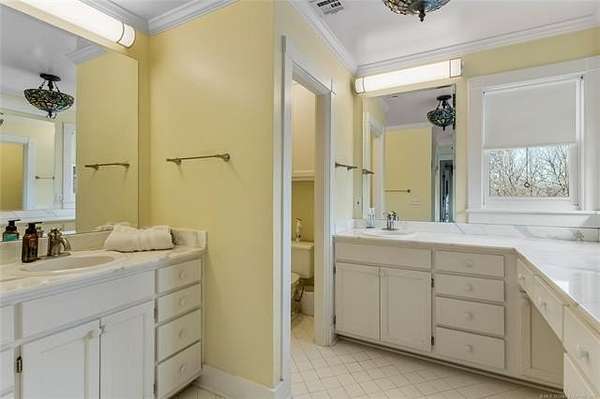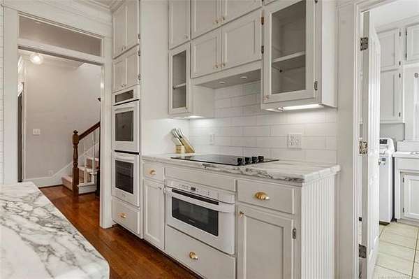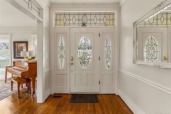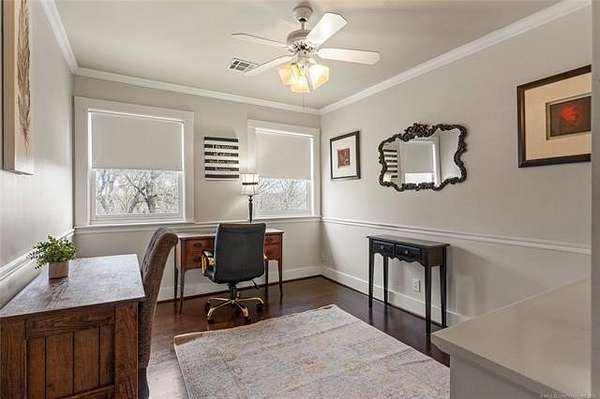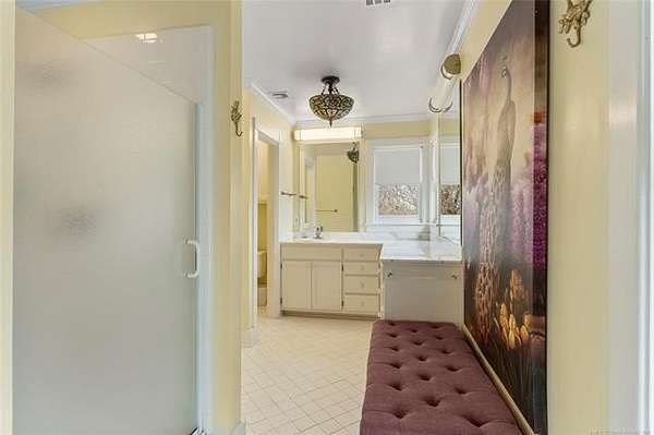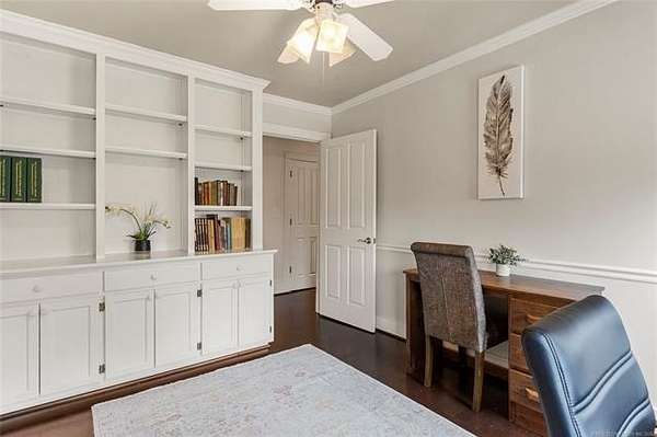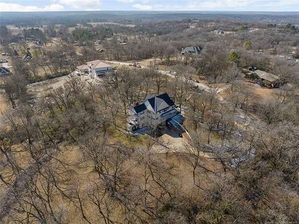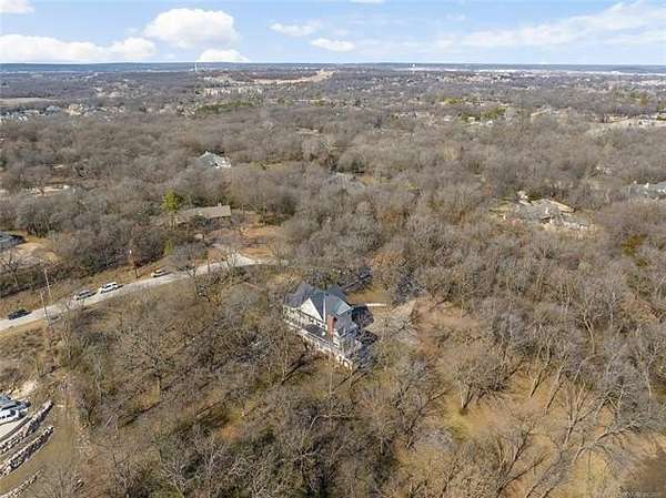 Now offered at $719,000 and priced below its recent appraised value, this one-of-a-kind 3,899 square foot (AP) home on approximately 2 acres in Tulsa's 74132 zip code combines privacy, character, and function in the highly sought-after Jenks School District. Located at the end of a quiet cul-de-sac and backing to a golf course, this 4 bedroom, 4 full bath, 2 half bath property offers rare acreage with mature trees and wooded surroundings while still being minutes from 81st and Union. Built in 1992, the American farmhouse-style design features hardwood floors through nearly the entire home, crown molding, salvaged architectural details including a historic fireplace mantel, and a finished walk-out basement that provides flexible living space. The kitchen is a standout with marble countertops, island, pantry, breakfast nook, and seamless flow into the main living areas filled with natural light and peaceful views. The primary suite includes a private bath with double sinks, separate shower, and walk-in closet, while additional bedrooms also feature walk-in closets. With five living areas, a dedicated office with built-ins and what could be a second office or study nook upstairs, formal dining, and a spacious utility room with sink, the layout supports entertaining, remote work, or multigenerational living. The 3-car side-entry garage includes extensive storage and work space. Outdoor features include professional landscaping, sprinkler system, decorative lighting, balcony, deck, and a detached shed ideal for hobbies or tools. Major upgrades include a new roof in 2024, whole-home natural gas generator, aerobic septic system, central vacuum, security system, programmable thermostat, and high-speed internet wiring. Homes offering 2 acres, golf course frontage, walk-out basement, and Jenks Schools at a price under appraised value are rare in Tulsa County. Property is occupied and shown by appointment with 24-hour notice.