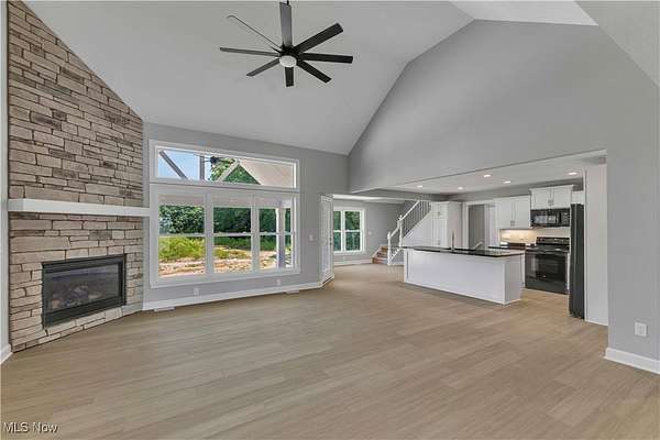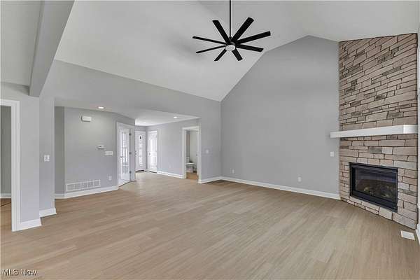 Welcome to 7637 Springfield Drive in charming Valley City, Ohio - a stunning brand-new build from Mason Builders offering 2,600 sq ft of thoughtfully designed living space on an expansive 2.1-acre homesite. This modern ranch features 4 bedrooms and 3.5 baths, including two owner's suites for ultimate flexibility. The main floor hosts three bedrooms - including the primary owner's suite - along with a home office, convenient laundry room, and a light-filled open floor plan. The great room's stone fireplace creates a cozy focal point, seamlessly connecting to the dining area and chef-inspired kitchen with a massive island perfect for gatherings. Upstairs, the finished bonus room serves beautifully as a second owner's suite, guest retreat, or hobby space. A three-car offset garage provides generous storage, while the covered back porch overlooks the serene backyard - ideal for quiet mornings or evening entertaining. The huge unfinished basement is already plumbed for a bathroom, giving you endless possibilities to expand. Set in Valley City, you'll enjoy a community celebrated for its welcoming atmosphere, scenic countryside, and fun traditions like the annual Frog Jump Festival. With excellent schools, local parks, and easy access to Medina, Brunswick, and Cleveland, this location blends peaceful rural living with modern convenience. Don't miss the opportunity to own this exceptional new home!
