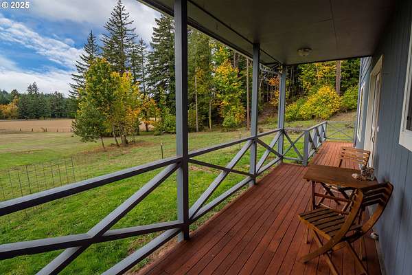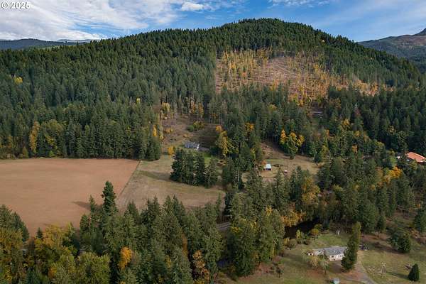 Tucked back off the road for peace and privacy, this beautiful property on sought-after Mosby Creek Rd offers the kind of country living people dream about. Sitting on just over 18 acres, it's a mix of open pasture, timbered hills, and peaceful spaces to stretch out, explore, and enjoy the quiet. The home itself has room for everyone, with all five bedrooms upstairs, including a primary suite with its own bath and a large hall bath for the rest of the crew. There's even a big bonus room above the garage that could be a playroom, office, or guest space. Downstairs, you'll find two comfortable living areas, one with a cozy wood-burning fireplace, along with a dining room and a bright kitchen that brings everyone together. The laundry and a half bath are conveniently located on the main level. Outside, there's something for everyone: a large level pasture that's cross-fenced and ready for animals, a classic barn with an attached fenced garden area, and plenty of fruit trees scattered around the property. The timbered hillside adds natural beauty and privacy, and the property also includes creek access across the road, giving you a spot to enjoy the water on warm days. It's the best of both worlds, offering quiet country living on one of Cottage Grove's most desirable roads, just minutes from town. Whether you're raising a family, growing a garden, or simply looking for space to breathe, this place feels like home the moment you pull in.