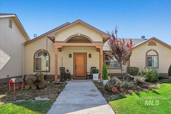 NO HOA fees & NO CCR restrictions, just open skies & mountain views of Bogus Basin! Bring your horses, your dreams, and your sense of freedom to this remarkable 5-acre property tucked away on a private road on the outskirts of Middleton! The home welcomes you with the warmth of rich hickory hardwood floors & a hand-laid Navajo-style tile mosaic that instantly captures the home's artisan charm. The gourmet kitchen stands as the true centerpiece, crafted for connection & culinary creativity, it has granite countertops, spacious island w/prep sink, breakfast bar, wine fridge, new DW/range, & striking western-inspired tiled backsplash. There is even a 220 outlet for small European appliances! The thoughtful split-bedroom design offers both privacy and flow, complemented by a generous formal dining room w/a new Antler chandelier and two comfortable living areas--perfect for gathering, relaxing, or entertaining in style. The master ensuite is private & walks out to the back patio. Designed for rural living, the mudroom boasts a toilet, sink, floor washout, w/warm water for bathing horses or rinsing off after a long day outdoors. Gated pipe fencing encloses the horse pasture, while the circular driveway & RV parking offer room to expand for shop or barn. It also has a loafing shed & auto heated waterers for horses. It's truly a rare find! Please click on the tour link for 3D and more info.