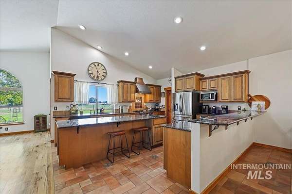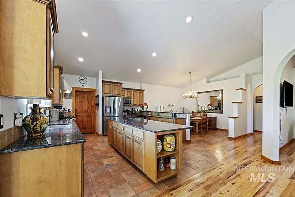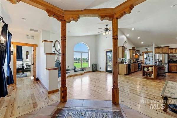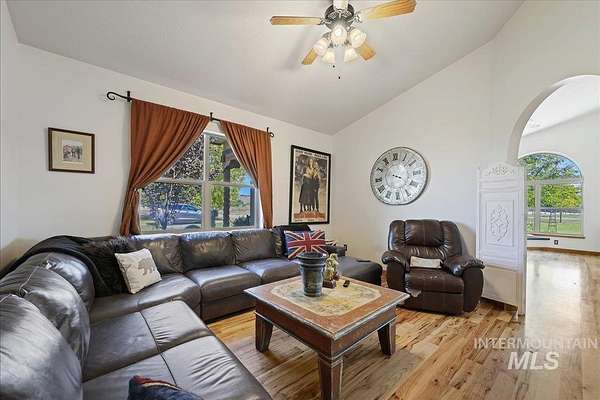 NO HOA fees & NO CCR restrictions, just open skies & mountain views of Bogus Basin! Bring your horses, your dreams, and your sense of freedom to this remarkable 5-acre property tucked away on a private road on the outskirts of Middleton! The home welcomes you with the warmth of rich hickory hardwood floors & a hand-laid Navajo-style tile mosaic that instantly captures the home's artisan charm. The gourmet kitchen stands as the true centerpiece, crafted for connection & culinary creativity, it has granite countertops, spacious island w/prep sink, breakfast bar, wine fridge, new DW/range, & striking western-inspired tiled backsplash. There is even a 220 outlet for small European appliances! The thoughtful split-bedroom design offers both privacy and flow, complemented by a generous formal dining room w/a new Antler chandelier and two comfortable living areas-perfect for gathering, relaxing, or entertaining in style. The master ensuite is private & walks out to the back patio. Designed for rural living, the mudroom boasts a toilet, sink, floor washout, w/warm water for bathing horses or rinsing off after a long day outdoors. Gated pipe fencing encloses the horse pasture, while the circular driveway & RV parking offer room to expand for shop or barn. It also has a loafing shed & auto heated waterers for horses. It's truly a rare find! Please click on the tour link for 3D and more info.