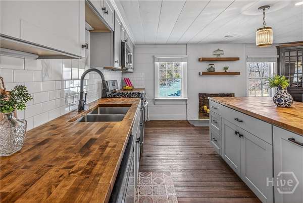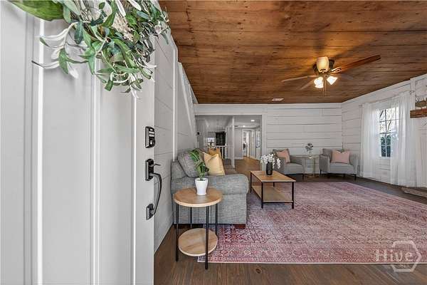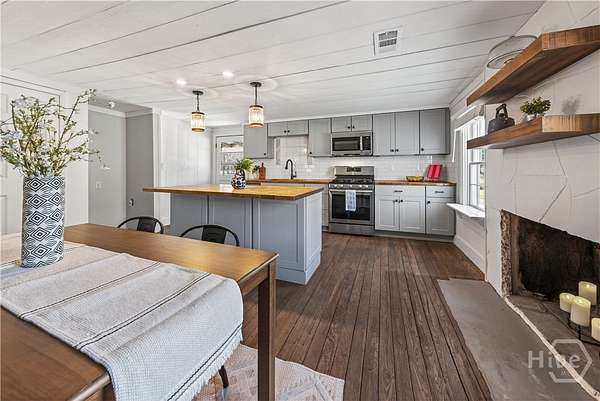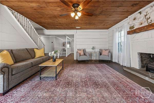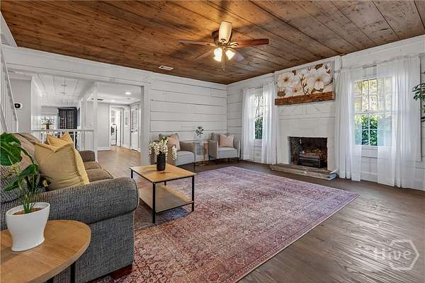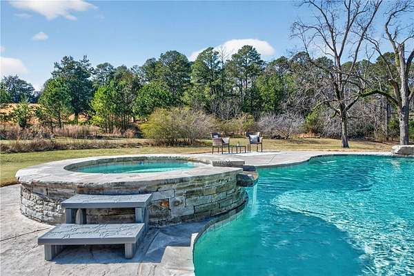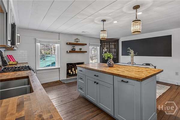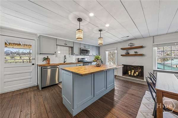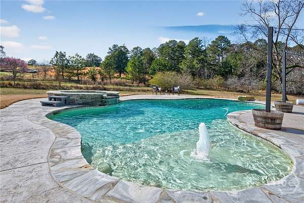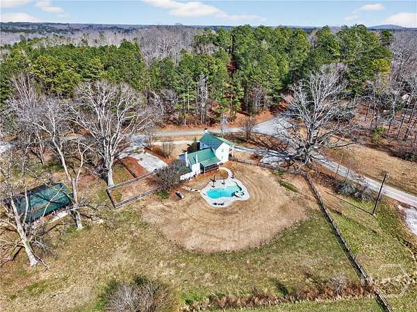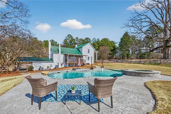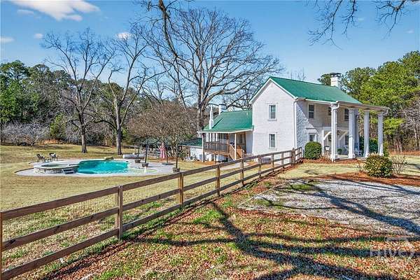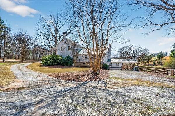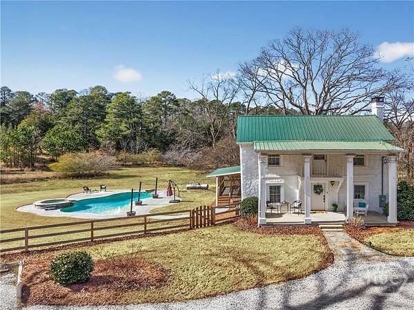 Step back in time while enjoying modern luxury in this breathtaking white Colonial-style home built in 1860, beautifully situated on 2 peaceful acres in Covington, GA. Rich in history and timeless charm, this rare gem welcomes you with a grand front porch framed by classic pillars - the perfect place to relax and enjoy a quiet morning coffee. Inside, you're greeted by a spacious living room featuring a cozy fireplace and stunning wood-accented ceilings that highlight the home's historic character. Down the hall, the beautifully updated kitchen is truly a chef's dream, offering stainless steel appliances, a large center island, and a bright breakfast and dining area designed for gathering and entertaining. Just off the kitchen you'll find a convenient half bath and laundry room. The main-level primary suite is privately tucked off the living room and showcases beautiful wood ceilings, generous space, a walk-in closet, and an updated ensuite bath with double vanities and a standing shower. Upstairs, a versatile loft area provides the perfect flex space for a desk, reading nook, or sitting area, along with a full hall bath and an oversized secondary bedroom featuring its own fireplace, abundant natural light, and a charming private balcony. The terrace level adds incredible versatility with a sliding barn door entry into another spacious bedroom, plus an additional kitchen, full bathroom, and dining area - ideal for guests, extended living, or potential income opportunities. Step outside to your own private retreat complete with a screened-in deck, in-ground pool and hot tub, fenced yard, scenic views, and a pole barn - creating a peaceful setting that feels like a getaway every day. Located in Walton County, this one-of-a-kind historic home blends 1860s character with thoughtful modern updates, offering a truly rare opportunity you don't want to miss!