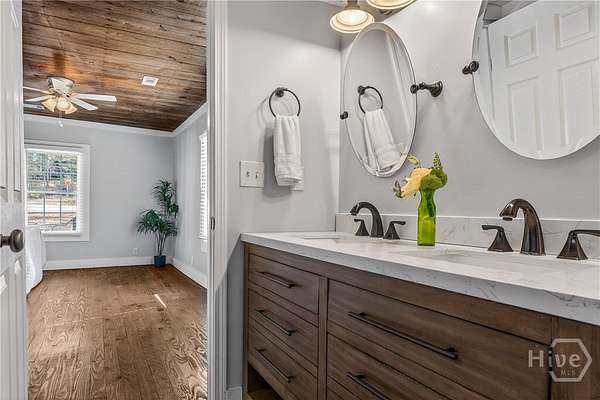 - Breakfast Area, Ceiling Fan(s), Double Vanity, Kitchen Island, Main Level Primary, Primary Suite, Separate Shower