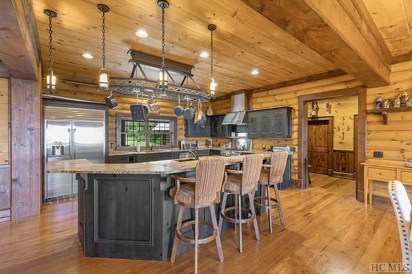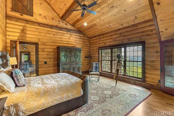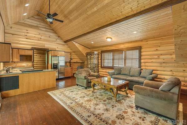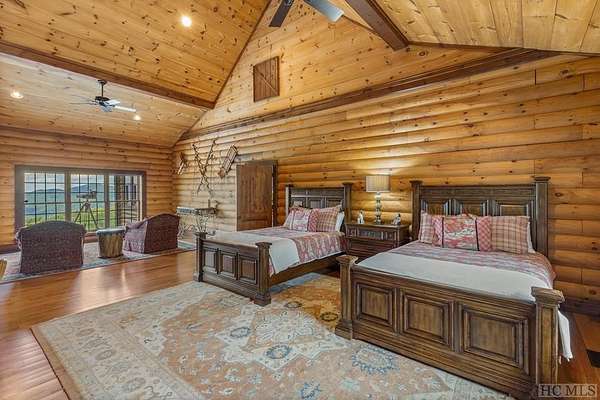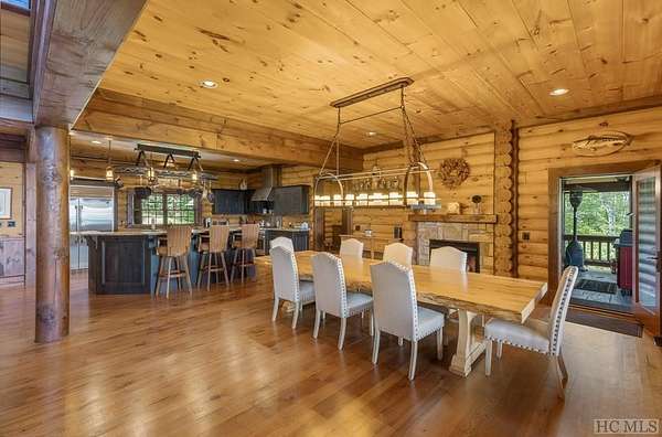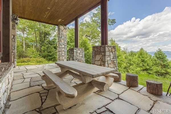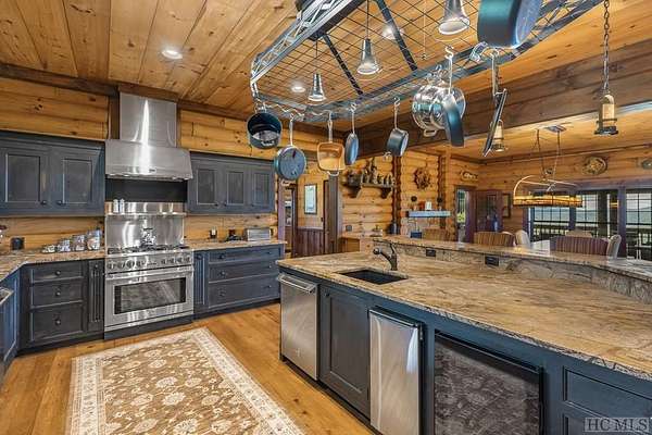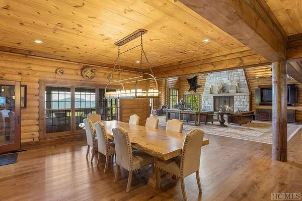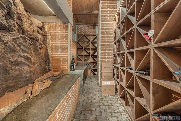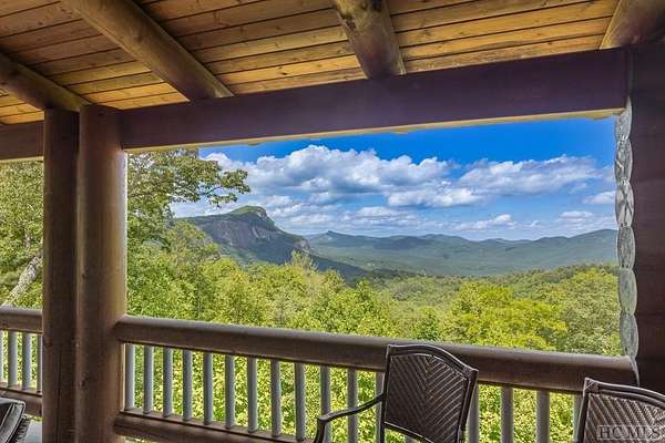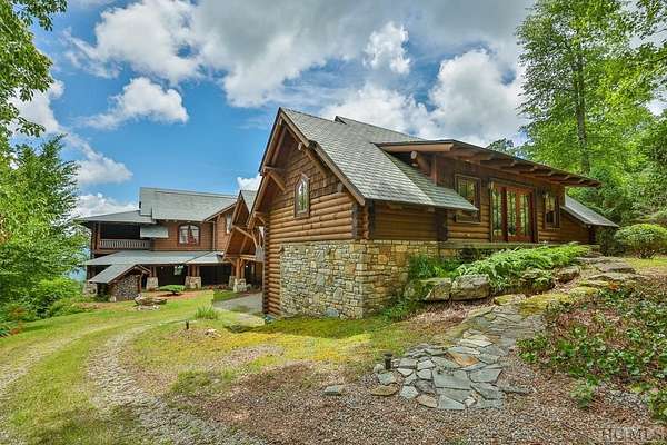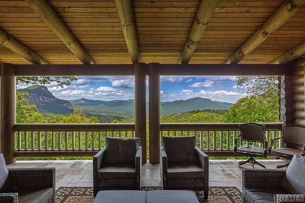 Welcome to 764 Hardscrabble Ridge Road-tucked into one of Highlands' most prestigious neighborhoods, this stunning home offers the best of mountain living with style, comfort, and a serious wow factor. Built by Heritage Log Homes, every inch of this residence reflects thoughtful design and expert craftsmanship. Step inside the grand great room and you're immediately struck by the soaring 30-foot ceiling, a dramatic stone fireplace, and sweeping views of Whiteside Mountain. It's a space that feels both impressive and inviting. The open-concept kitchen and dining room make hosting a breeze. Slide open the doors to the spacious covered porch and summer kitchen-perfect for entertaining or just enjoying the cool mountain air and unforgettable scenery. The primary suite is a true escape, complete with its own fireplace and extra-large his-and-hers closets. Upstairs, your guests will feel like they've checked into a luxury lodge. Each of the three guest suites includes its own private balcony, and a large loft area offers extra space for work, relaxation, or play. Downstairs, there's a special treat for wine lovers: a one-of-a-kind wine cellar built around a natural granite formation that keeps everything at the ideal temperature and humidity. Outside, the grounds are just as impressive. Picture yourself unwinding by the koi pond, enjoying a picnic, or serving up wood-fired pizza from your custom stone oven. There's also a two-car garage with a fully outfitted guest suite above-kitchen, bath, and all-so friends and family can visit with total independence. Just a short drive from the heart of Highlands, this home is more than a place to live-it's a mountain lifestyle at its finest. Peaceful, beautiful, and built for both quiet moments and unforgettable gatherings.