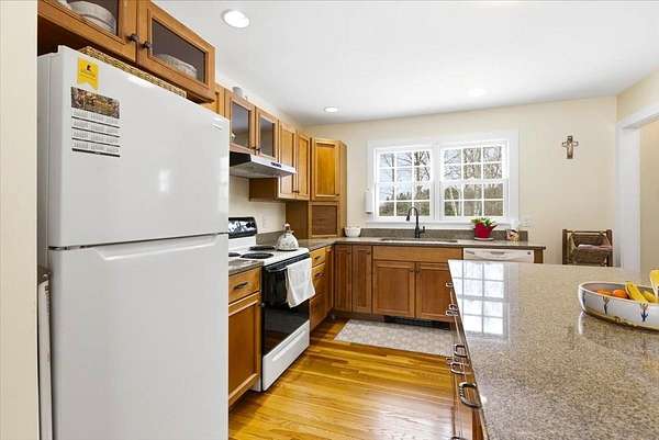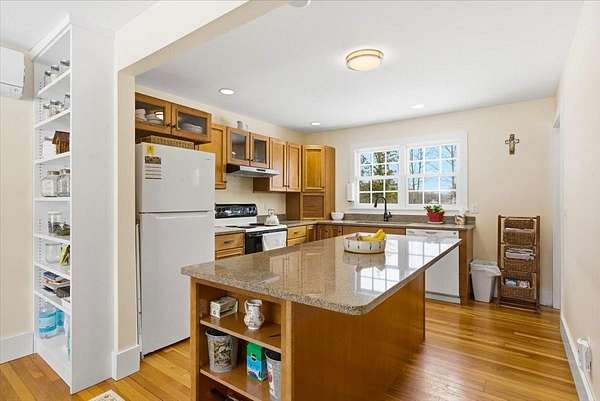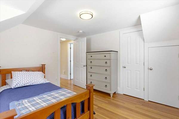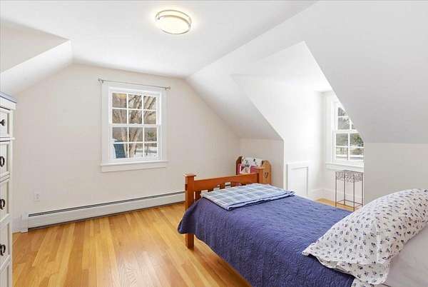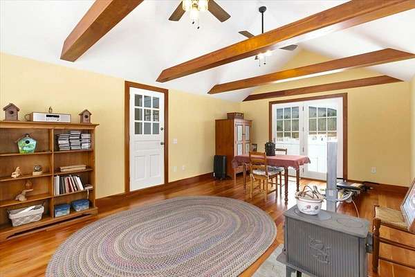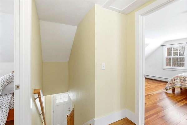 This charming, beautifully updated Cape sits on a sprawling 2-acre lot in a highly sought-after section of Shaftsbury, offering breathtaking panoramic mountain views. Boasting character and gleaming hardwood floors throughout. The first floor features a large living room with built-in bookshelves and cozy wood stove, a primary bedroom, full bath, and spacious country kitchen with granite countertops, island with storage and seating, recessed lighting, and adjacent eat-in dining area. There's a practical mudroom off the main entrance, which leads to a bright 14' x 22' multi-purpose sunroom with cathedral ceilings, perfect for an office, crafting, home gym, or entertaining guests. Upstairs, you'll find two generously sized bedrooms with beautiful cherry and oak wood floors and an updated full bath. The full basement with concrete floors and insulated walls provides excellent storage space and utilities. Outside, an enclosed back porch overlooks the expansive yard and established gardens, creating a peaceful setting to enjoy the surrounding landscape. A large two-car garage completes the property. Recent upgrades include a new roof (2021), siding (2023), heating system (2020), new drilled well (2020), heat pump water heater (2025), heat pump mini split (2025), and added insulation through Efficiency Vermont (2025). Kitchen, flooring, bathrooms, windows, electrical, and plumbing were updated in 2009. Conveniently located just 20 minutes to Manchester and 10 minutes to Bennington, with easy access to major highways. Close to premier ski resorts including Bromley (30 minutes), Stratton (45 minutes), and Mount Snow (55 minutes). Truly move-in ready and offering the perfect blend of comfort, updates, and Vermont charm.