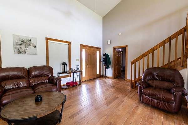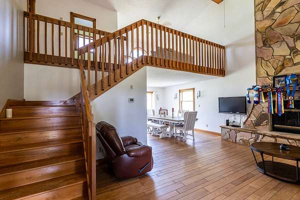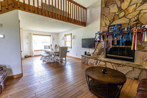 Discover a unique equestrian property featuring a well designed 6 stall barn, complete w/ an indoor work arena & ample outdoor facilities. The second newly built 36X36 barn offers 4 additional stalls w/ cross ties & matts in the middle. Larger barn also features 6 stalls fully matted w/a durable concrete foundation, dedicated garage space for storage & spacious hayloft above the barn for easy access. The 16 acres features 4 separate pastures each surrounded by treated poplar fencing & equipped w/ gates. One pasture features a pond surrounded by trees & a dry lot that can be accessed directly from the indoor work arena. The Quaint modern Farmhouse offers a cozy front porch, open floor plan, main floor bdrm & bath with large master suite & loft area upstairs. Additional space includes a full walkout basement with 1/2 bath. This property is conveniently located just minutes from AA/11 intersection, close to shopping & schools! Call Sarah Boone-Jayasuriya at 606-375-9884