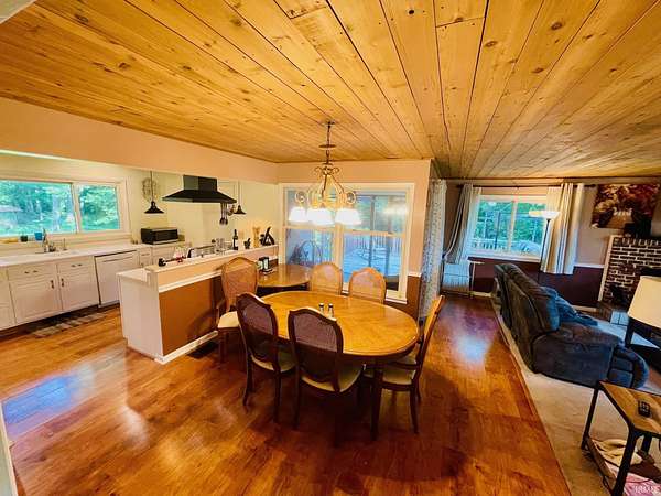 Welcome to Your Dream Retreat! Come Fall In Love. Nestled on over two acres of stunning landscape, this 3-bedroom, 2-bath sanctuary is a masterpiece of luxury and natural beauty. Begin your day on the screened porch, with the melody of a winding creek flowing into your private pond, surrounded by enchanting small waterfalls. Inside, enjoy an open floor plan, perfect for gatherings by the cozy fireplace. The master suite boasts a private hot tub room for ultimate relaxation. Downstairs, a walkout basement with a rec room, family room, and full bath awaits, while outside, a deck offers picturesque views, leading to a charming covered bridge. And there's more: an oversized 2-car garage and a heated pole barn with 200-amp service, perfect for the hobbyist or car enthusiast. This is more than a home--it's a lifestyle. Schedule your private tour today.