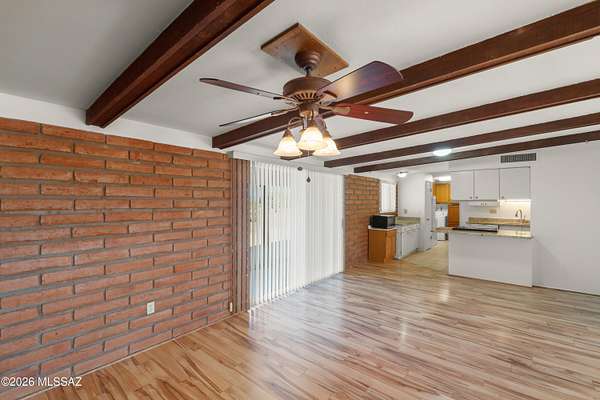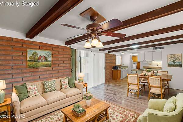 Welcome to The Ranch, where wide-open space, soul, and scenery come together. Set on 8.67 acres, this 1,756 sq ft burnt adobe ranch-style home delivers timeless character with modern updates and mountain views in every direction. Beamed ceilings, rich textures, and a wood-burning fireplace with dramatic stone anchor the home with warmth and authentic ranch charm. Inside, enjoy an updated kitchen and bathrooms, refreshed flooring, and thoughtful extras like an additional closet and bonus room off the primary suite, perfect for a retreat, exercise room, office, or creative space. Outside, mature fruit trees, expansive land, and endless possibilities await. Bring your animals, park all the toys, or build exactly what you've been dreaming of. Designed for independence and peace of mind, the property features a private well, owned solar water heater, an 1,100-gallon above ground water storage tank and much more. A well-maintained road attached storage off the carport, and wide buffers from neighbors make everyday living easy and quiet. Whether you're a nature lover, a homesteader at heart, or simply craving freedom without an HOA, The Ranch offers space to breathe, room to grow, and a lifestyle that's getting harder to find.