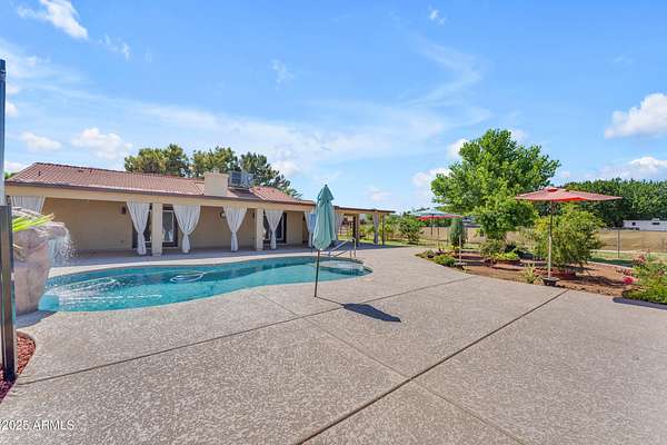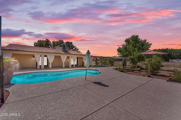 Welcome to the COUNTRY! This home on 2 acres has ROOM for your RV, toys, ANIMALS with a PASTURE, Garden and MORE! Within the last 2 years a NEW Sparkling POOL, Extended COVERED PATIO with cool decking, GARDEN with NEW 2nd SHED, Metal RV cover and loads of TREES have been added!! So many FRUIT TREES, plants and garden FOODS are here for the HARVEST! Raised beds with irrigation are here for your HOMESTEAD! NEW TILE, bathroom updates and NEW KITCHEN APPLIANCES, Farm Sink, Granite Countertops and more have IMPROVED this home to make it a FOREVER HOME! The FIREPLACE in the Family Room makes the home COZY and inviting. A MUST SEE home! With such inexpensive FLOOD IRRIGATION, this is a property where you can SPREAD OUT and GROW! Come see this piece of heaven!