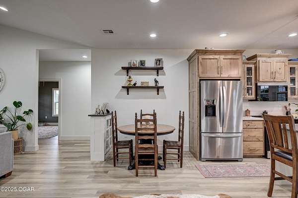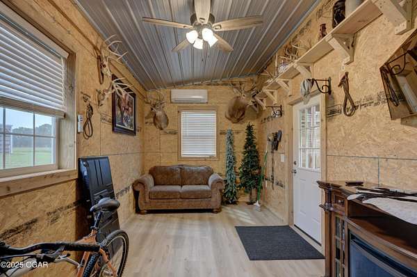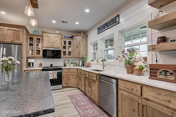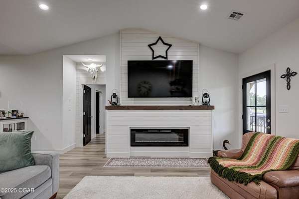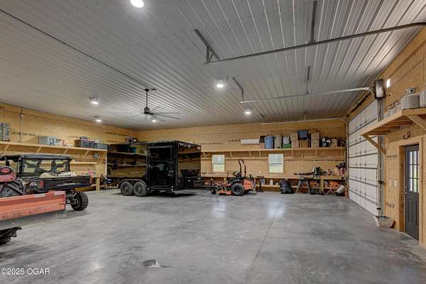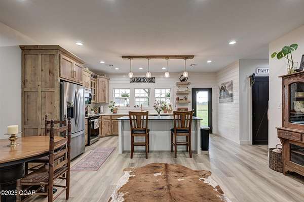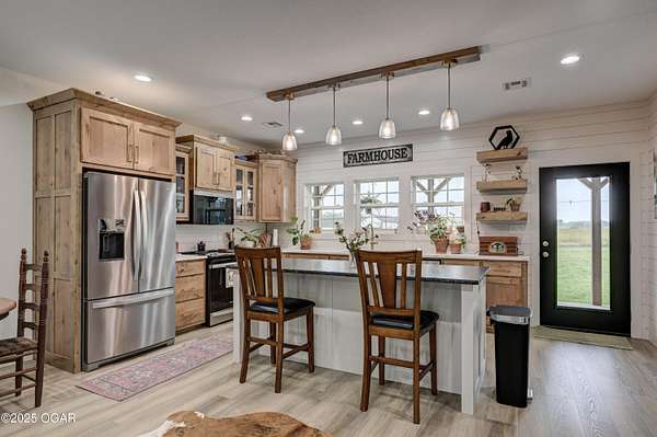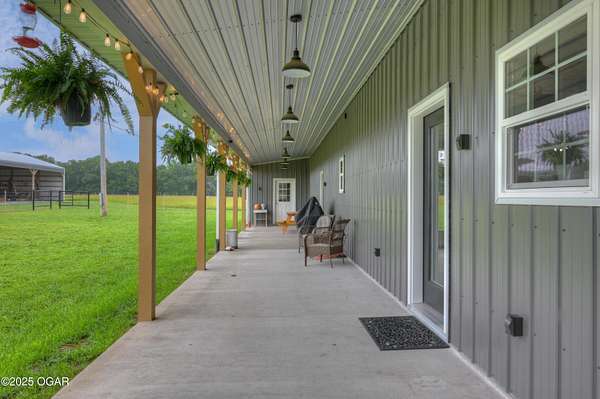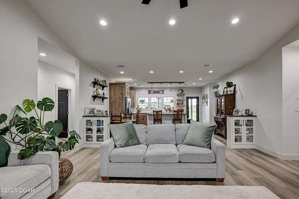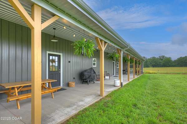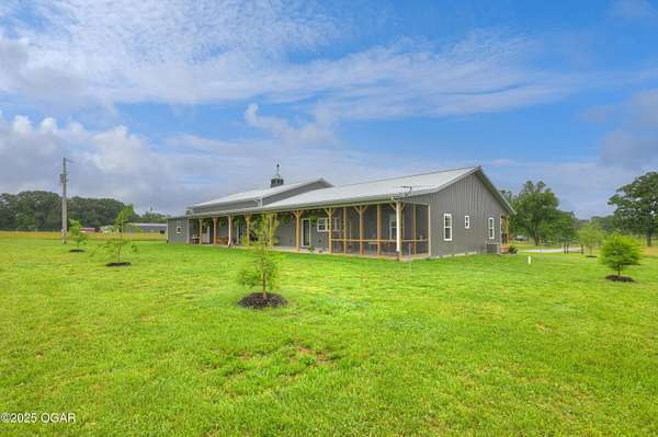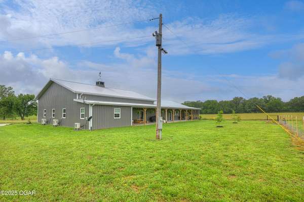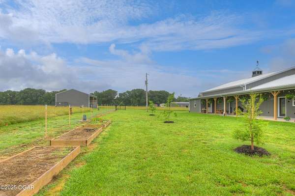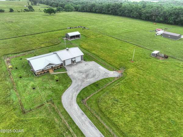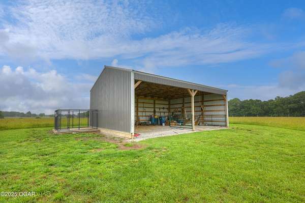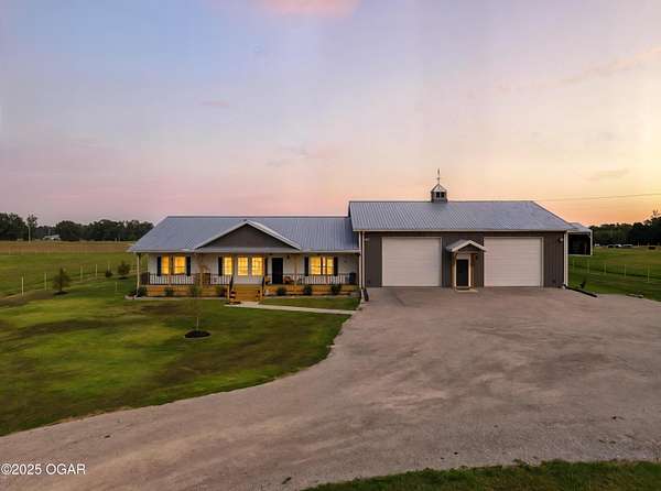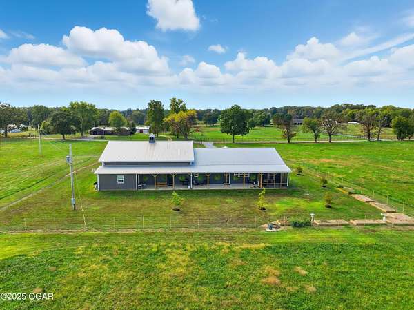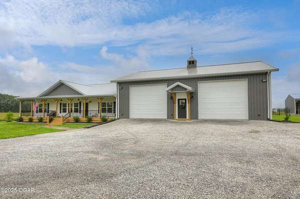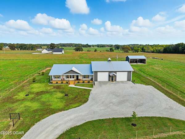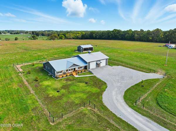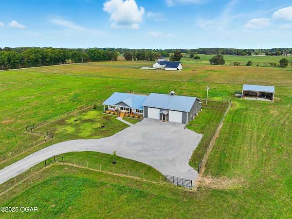 Custom 4,160 Sq.Ft. Barndominium on 10.9 Acres - The Ultimate Blend of Comfort, Function, and Country Living! Discover the perfect balance of luxury and practicality in this stunning barndominium located in Newton County, just south of Joplin. Featuring 2,160 sq.ft. of modern living space and a 2,000 sq.ft. climate-controlled shop, this property was thoughtfully designed for both everyday living and serious hobbies. Inside, enjoy a spacious open-concept great room that seamlessly combines the kitchen, dining, and living areas-ideal for entertaining or quiet evenings at home. The split-bedroom floor plan provides privacy, while luxury vinyl plank flooring, soft-close cabinetry, and granite & quartz countertops add timeless appeal. A walk-in pantry, dedicated laundry room, and ample storage ensure everyday convenience. The 18' x 16' primary suite offers a peaceful retreat with a spa-like ensuite bath and oversized walk-in closet. Two additional bedrooms and a half bath complete the functional layout. The attached 2,000 sq.ft. shop is climate-controlled and ready for your next project-perfect for work, storage, or recreation. Step outside to enjoy a full-length covered back porch, screened-in sitting area, and an enclosed mancave ideal for gatherings or hobbies. Property highlights include 10.9 acres of gently rolling land, a 30' x 40' machine shed, 6-strand barbed wire fencing, and a gated entrance offering privacy and peace of mind. With an all-electric, energy-efficient build and rural water, this property truly has it all-space, style, and self-sufficiency.