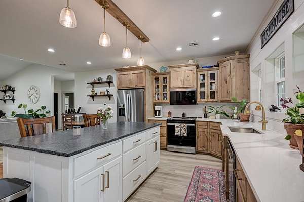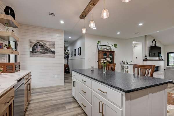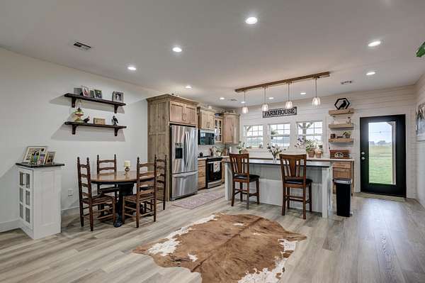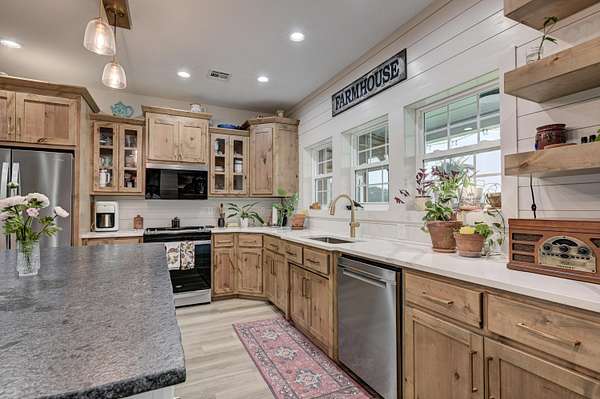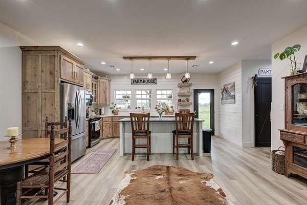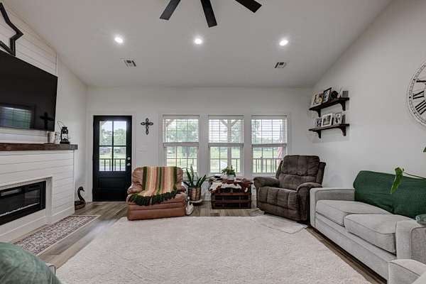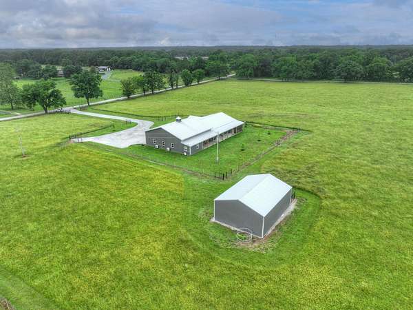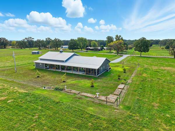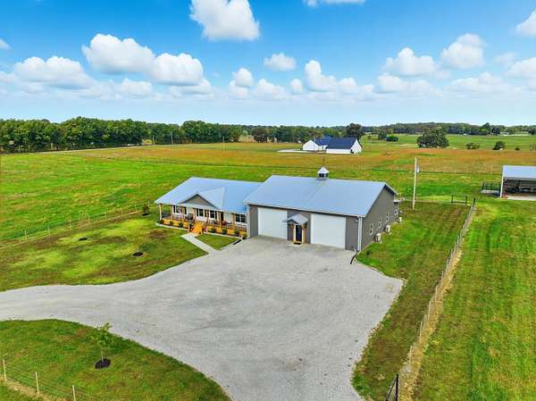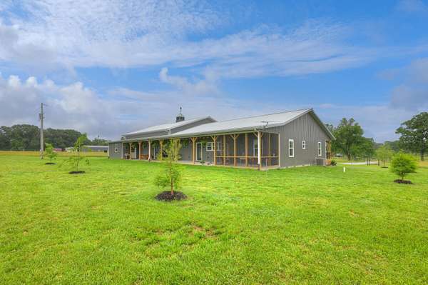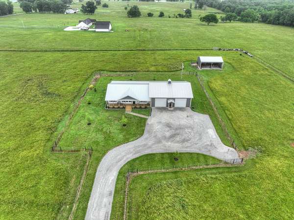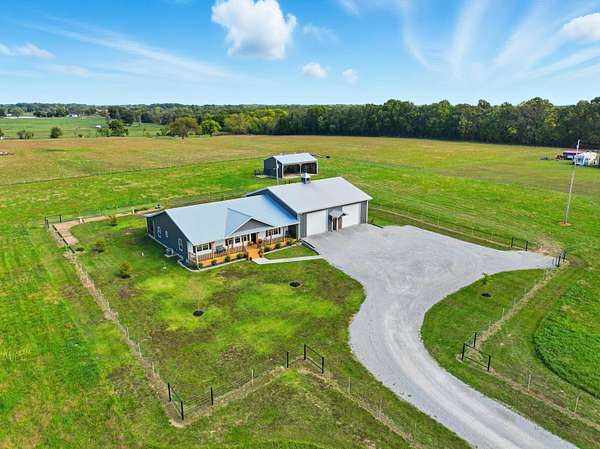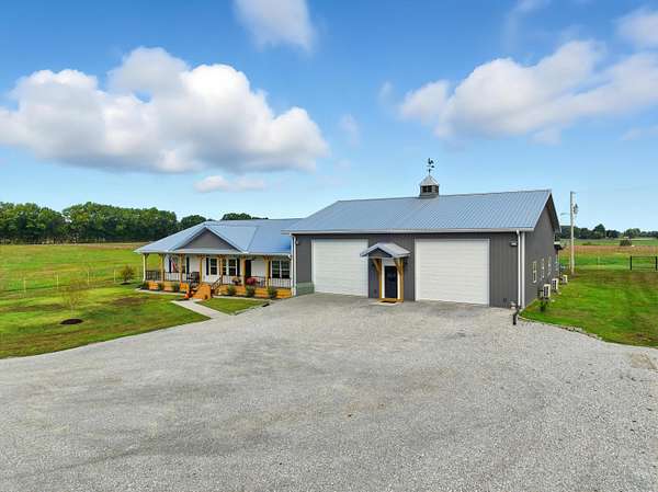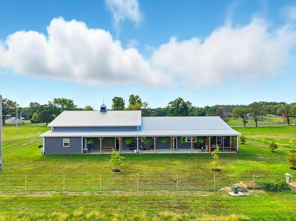 Custom 4,160 Sq.Ft. Barndominium on 10.9 Acres -- The Ultimate Blend of Comfort, Function, and Country Living!Discover the perfect balance of luxury and practicality in this stunning barndominium located in Newton County, just south of Joplin. Featuring 2,160 sq.ft. of modern living space and a 2,000 sq.ft. climate-controlled shop, this property was thoughtfully designed for both everyday living and serious hobbies.Inside, enjoy a spacious open-concept great room that seamlessly combines the kitchen, dining, and living areas--ideal for entertaining or quiet evenings at home. The split-bedroom floor plan provides privacy, while luxury vinyl plank flooring, soft-close cabinetry, and granite & quartz countertops add timeless appeal. A walk-in pantry, dedicated laundry room, and ample storage ensure everyday convenience.The 18' x 16' primary suite offers a peaceful retreat with a spa-like ensuite bath and oversized walk-in closet. Two additional bedrooms and a half bath complete the functional layout.The attached 2,000 sq.ft. shop is climate-controlled and ready for your next project--perfect for work, storage, or recreation. Step outside to enjoy a full-length covered back porch, screened-in sitting area, and an enclosed mancave ideal for gatherings or hobbies.Property highlights include 10.9 acres of gently rolling land, a 30' x 40' machine shed, 6-strand barbed wire fencing, and a gated entrance offering privacy and peace of mind. With an all-electric, energy-efficient build and rural water, this property truly has it all--space, style, and self-sufficiency.