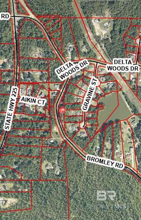 Est $161/moTINY HOMES ALLOWED!! Discover this beautiful and private 1-acre lot backing up to Delta Woods subdivision. This property is not part of a subdivision, meaning no HOA, offering added flexibility and freedom. Situated on the east side of the road, the lot features gorgeous mature trees. City water and sewer are available on Bromley Road. The lot is zoned for Baldwin County Residential Single Family Estate District and the typical setbacks for that zoning are 40ft from the front and rear, and 15ft from the sides. Buyer to verify all information during due diligence.