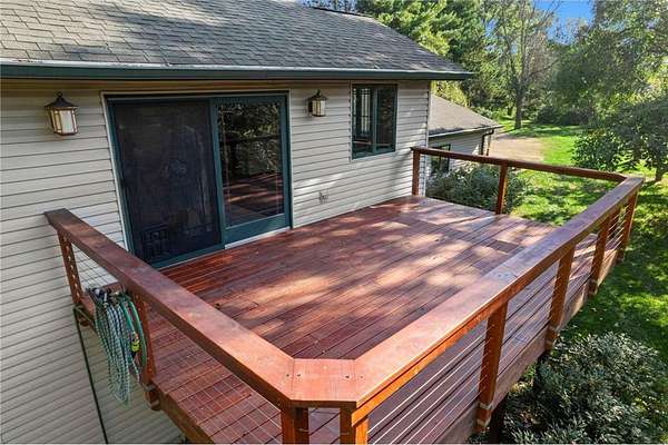 Secluded Retreat on nearly 2 Acres - Minutes from the center of Woodbury! Rare opportunity to experience the perfect balance of privacy & convenience with this stunning four-bedroom, two-bath home, beautifully nestled on your own slice of heaven. Surrounded by nature and offering breathtaking views, this property provides a peaceful escape while being just minutes from all the amenities Woodbury offers. Step inside to find generous room sizes and a thoughtfully designed layout. The chef's kitchen is a true highlight, featuring high-end stainless-steel appliances, a gas cooktop with vent hood, double ovens, and an abundance of cabinet and counter space. Ideal for both everyday cooking and entertaining. Natural light pours in through sliding glass doors that lead to a spacious deck. Perfect for morning coffee or evening gatherings! The enormous primary suite offers a private sanctuary, complete with a walk-through bath, large closet, and a bonus private deck to soak in the tranquil surroundings. The lower level expands the living space with a large recreation room, two additional bedrooms, a full bath, laundry area, and a versatile flex room. Perfect for a home office, gym, or hobby space. A heated, detached two-car garage provides ample storage and room for all your projects. Quality materials thru out - Anderson windows, Back deck 2024 & BR deck 2023, water softener (2022) radon & HRV (2021), Furnace, AC & water heater (2021), 200 AMP electric in house & 100 AMP in garage. Whether you're enjoying the quiet solitude or entertaining guests, this remarkable property offers it all. Space, comfort, and a stunning natural setting! Fruit trees adorn the property - cherry, apple & even blueberry bushes. Perfect for someone who wants to garden but be close to work & the city!