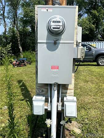 Est $374/mo200A electric service has been added to the property on the Northeastern side. Along the driveway there are 2x 110v and 4x 30A outlets to conveniently plug in campers. Wi-fi ready (Southern Tier Wireless), Non-attached water pump w/ hoses and 10'x8' Rubbermaid shed. 5 minutes from Angelica town center and 30 minutes to Letchworth State Park Buyer agrees to the existing survey.