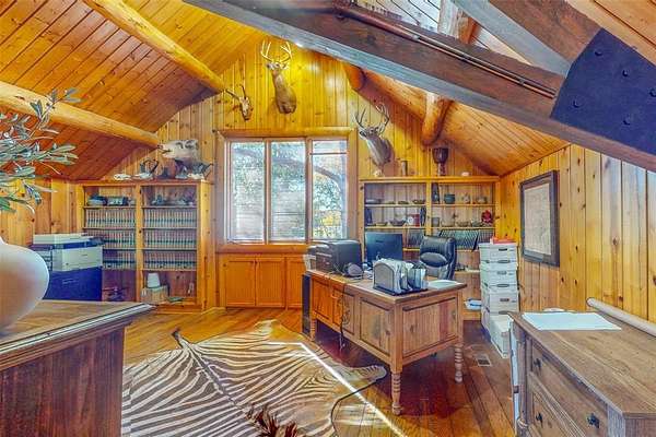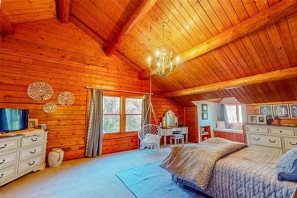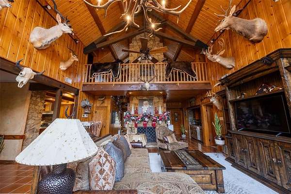 Welcome to your private retreat, a high-fenced property that perfectly blends rustic charm with modern convenience. At the heart of this haven stands the main lodge-style home, radiating warmth with its natural wood finishes, vaulted ceilings, and stone accents. Modern upgrades complement the lodges timeless appeal, offering a seamless fusion of comfort and style. Adjacent to the main home, a cozy guest cottage awaits ideal for visitors or as a serene retreat of its own. This properties diverse landscape is a nature lover's dream. Rolling elevations provide stunning views, while a picturesque hardwood creek bottom meanders through the center, inviting peaceful reflection. Surrounding the creek are upland grassy areas bordered by thriving planted pines, creating a haven of privacy and tranquility. Outdoor enthusiasts and hunters will revel in the property's extraordinary wildlife. It is home to trophy whitetail bucks, fallow deer, sika deer, and more, offering incredible opportunities