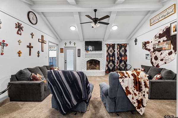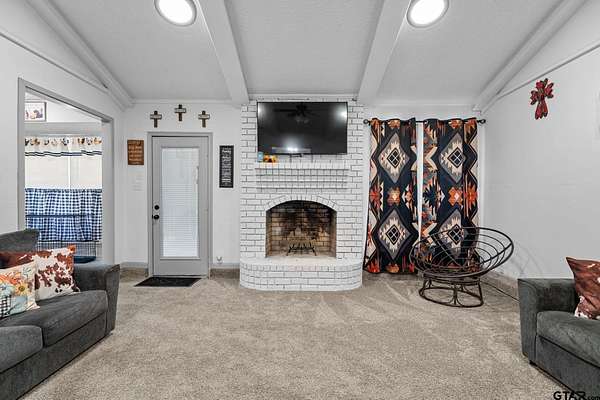 Sitting on a generous 1.6-acre lot surrounded by mature trees, this charming 3-bedroom, 2-bath home offers an ideal blend of privacy and convenience. Just minutes from Highway 271, you’ll enjoy quick access to I-20 and everything Tyler has to offer - without paying city taxes! Step inside to a warm and inviting living room featuring vaulted ceilings and a stunning fireplace, perfect for calm evenings at home. The galley-style kitchen is equipped with ample cabinetry and updated fixtures, creating a functional and stylish space for everyday living. Each bedroom is comfortably sized with plenty of natural light, while both bathrooms are thoughtfully designed with comfort and practicality in mind. Outside, you'll find a a large covered patio and plenty of space for outdoor activities, additional storage or hobbies! The surrounding mature trees enhance the property’s privacy, offering a sense of seclusion that’s rare to find so close to town. Don’t miss your chance to own this beautiful home. Schedule your showing today!