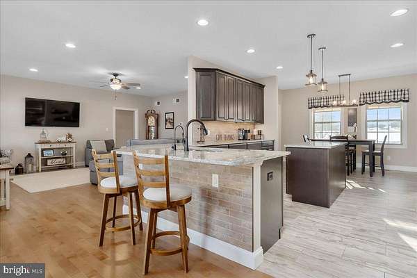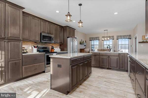 Like-New Rancher on 3 Acres with Mountain & Pastoral Views - Welcome to this stunning, nearly new rancher, just 4 years old and meticulously maintained, this home truly feels like new. Features 3 bedrooms, 2 full baths & 2 half baths. The open floor plan features 9' ceilings and a bright great room with beautiful wood floors and a cozy gas fireplace-perfect for everyday living or entertaining. The eat-in kitchen is a dream, offering granite countertops, a large center island, and all appliances included. Two dining areas provide flexibility for casual meals or formal gatherings. The private primary bedroom suite is a peaceful retreat with a walk-in closet and a stylish en-suite bath featuring a walk-in shower, double vanity, and tile flooring. The second and third bedrooms are thoughtfully located on the opposite side of the home, offering privacy for family or guests. French doors open to a dedicated home office with serene pastoral views-ideal for remote work or a quiet study. Main-level laundry includes washer and dryer for added convenience. Additional highlights include triple garage with workshop space, a walk-up attic heated & cooled and offers abundant storage or potential to convert into additional living space. The finished basement has a spacious family room, second fireplace, half bath, and storage galore. Even the crawl space is insulated and temperature-controlled-no detail overlooked. Nice level lot, large back porch with view of 300+ trees planted for privacy in rear. Peaceful country living with modern comforts, stunning views, and room to grow-this exceptional rancher checks every box. Located 10 min from Greencastle, 7 min to Mercersburg.