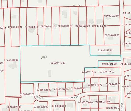 South of Clegg Rd, West off Lucille Dr. At very end of Lucille Dr.