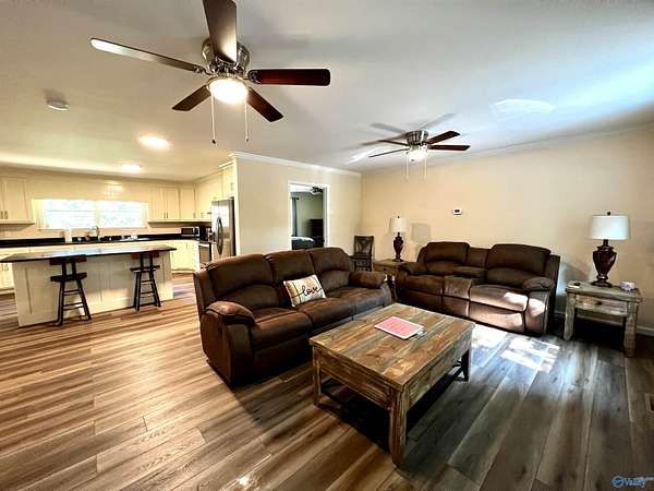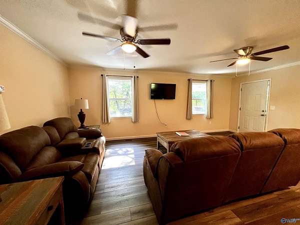 Don't miss out on this fully furnished getaway home or vacation rental investment property located in Northeast Alabama at the end of a county road. Enjoy serenity & nature overlooking the Tennessee River that borders TVA property for fishing, boating & recreation, right out the back door. This property is set up with 2 en-suites & living areas that are separated for a dual vacation or long-term rental incomes. Amenities include: approx. 2 acres with private drive, granite countertops, LVP floors, appliances, bedroom suites, cover porches & deck, private, finished and unfinished basement area with plumbing rough in for future bath, foam insulation, & more. Additional properties available.
