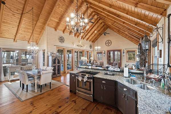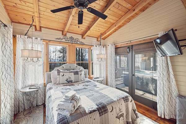 Perfectly placed between the charming downtowns of Blue Ridge and Ellijay, this mountain chalet is the epitome of luxury and tranquility. Perched on a private double lot, it offers unmatched seclusion and breathtaking, panoramic mountain views that will leave you in awe every single day. Step inside to discover a meticulously designed interior where rustic charm meets modern elegance. Vaulted ceilings with exposed wooden beams, a stone fireplace centerpiece, and expansive windows flood the space with natural light, framing those stunning vistas. The open-concept kitchen is a chef's dream, boasting high-end appliances, granite countertops, and custom cabinetry that seamlessly blends style with functionality. Outside, the home truly dazzles. Relax on the spacious wraparound deck, perfect for morning coffees or evening sunsets, while the fresh mountain air rejuvenates your senses. The double lot provides ample space for entertaining, gardening, or simply enjoying the peace and quiet of your surroundings. Whether you're unwinding in the private hot tub under a star-filled sky or gathering around the fire pit with friends, this chalet is designed for making unforgettable memories. With its unbeatable location, luxurious features, and serene setting, this mountain retreat is not just a home—it's a lifestyle. Don't miss the chance to own your dream escape in the heart of North Georgia's most sought-after destinations.