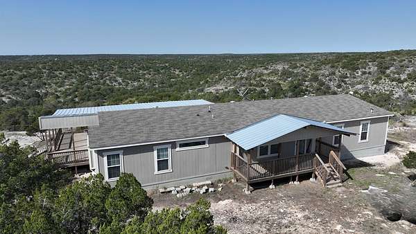 Located at the southwestern edge of Edwards County and eastern edge of Val Verde County, Texas. Good access less than 4 miles off US377. Easy ride to Lake Amistad or Devils River. Perched strategically atop a hill, this nearly-new 2020 custom built 4/2 Clayton modular home offers an exceptional living experience. It features stylish western inspired bedroom furnishings, Eric Church living room pieces, and a modern, trendy dcor throughout. Spanning an impressive 2560 sq ft, the home boasts a large, covered deck overlooking the canyons for miles and miles. Electricity, water, aerobic septic system. Additional 500 sq ft cabin for guests, and storage shed. Tons of terrain variation with moderately steep hill tops allowing for fantastic panoramic views from several different points of the property. Many great areas of very thick cover for the wildlife. Several good valley bottom areas with good soil. Small dry creek bottoms funneling through the property. Hearty amount of healthy pinon pines throughout the property along with cedar, shin oak, and live oak scattered around. Good trail system. Blinds. Feeders. Watering troughs. Aoudad whitetail axis hog turkey. Exempt taxes. #234