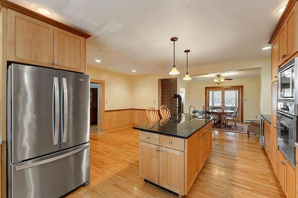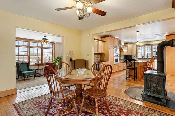 Well-maintained and thoughtfully updated 4,000 sq ft classic VT farmhouse situated on over 7 acres with mountain views and open land. This property offers the ideal balance of country living with convenient access to nearby amenities. The spacious gourmet kitchen features a large center island, Wolf cooktop, and soapstone wood stove, creating an excellent space for cooking and entertaining. The light soaked four-season sunroom with pellet stove provides additional year-round living space. Beautiful hardwood floors are throughout the home featuring original wide plank oak, birch and cherry with inlaid designs. Relax in the huge primary suite that features a jetted tub. The third-floor craft room offers flexible space for hobbies, office use, or additional living area. Additional improvements to the property include an oversized detached 2+ car garage with electricity and upstairs storage. The barn has tons of storage and is equipped with an industrial kitchen including a commercial pizza oven. You will be warm and toasty with the Rinnai heater. Located less than 10 minutes to St. Albans and I-89, makes for a convenient commute to the Burlington area while still enjoying a private, rural setting. A rare opportunity to own a versatile Vermont property with space, functionality, and accessibility.