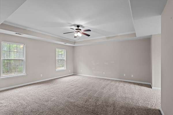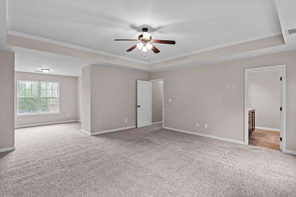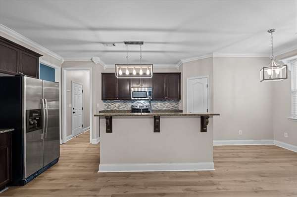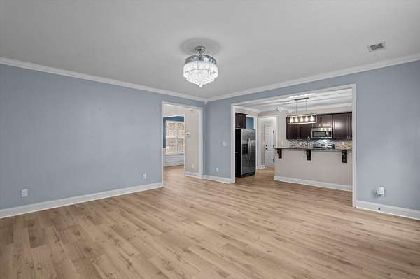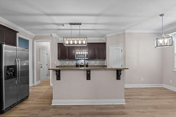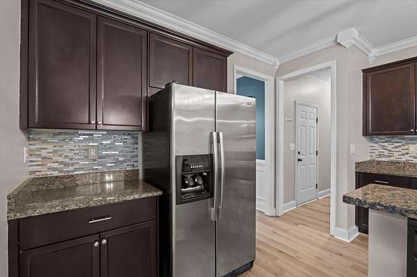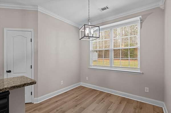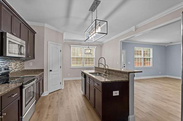Set on over 2.5 acres, this five-bedroom home delivers space, scale, and quiet luxury in a neighborhood designed for breathing room. From the moment you arrive, the welcoming front porch with Craftsman-style columns sets the tone for a home that blends classic design with modern comfort. Inside, a two-story foyer creates an immediate sense of arrival, flanked by a formal dining room with coffered ceilings and wainscoting - ideal for hosting - and a formal living room that easily doubles as a private home office or sitting room. The heart of the home opens into a spacious living area with a wood-burning fireplace that flows seamlessly into the kitchen, making everyday living and entertaining effortless. The eat-in kitchen is both functional and refined, offering granite countertops, stainless steel appliances, a large island, and a walk-in pantry - designed to handle everything from quiet mornings to full-house gatherings. The primary suite is a true retreat, featuring its own sitting area, tray ceilings, a walk-in closet, double vanity, separate shower, and a garden tub - a space that feels calm, private, and intentionally designed. Five bedrooms and three full baths provide flexibility for guests, growing households, or multi-generational living. Outside, the fenced backyard offers room to roam, play, or unwind in privacy, complete with a storage shed for added convenience. A two-car garage rounds out the home with everyday functionality, while the expansive lot provides the kind of space that's becoming increasingly hard to find. Inside, the entire first floor has been refreshed with brand-new waterproof LVP flooring, adding durability and a clean, modern finish. Private. Spacious. Thoughtfully designed. This is the kind of home that feels like a lifestyle upgrade the moment you walk in. Schedule your private showing today!
