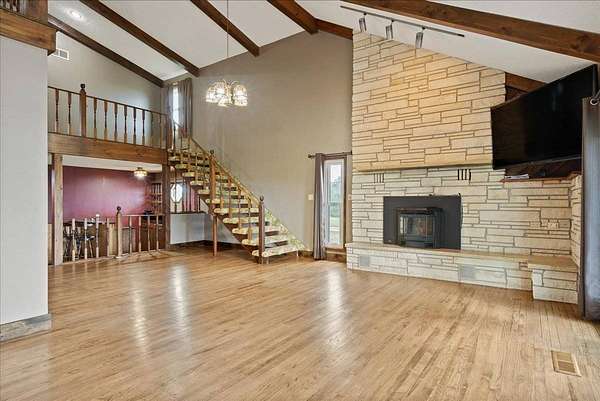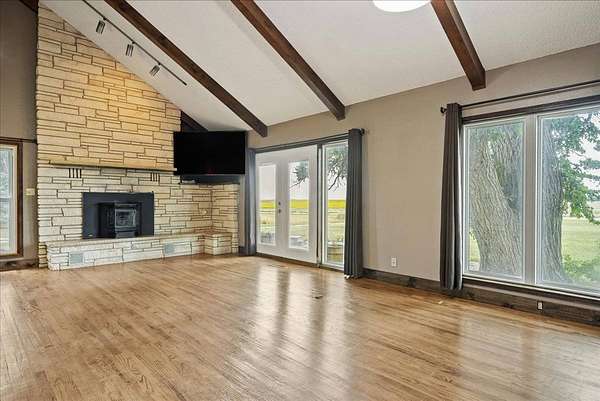 Spacious Home on 16.19 Acres - 7660 Hayes Road, Hemingford, NE This charming home nestled on 16.19 acres West of Hemingford, NE. This property boasts a spacious interior with modern amenities and rustic appeal, perfect for families or those seeking a peaceful countryside lifestyle. Key Features: Spacious Kitchen: Features ample wooden cabinetry, several upgraded appliances, and stylish track lighting. Large windows offer plenty of natural light and scenic views. Inviting Living Area: Highlights a stunning stone fireplace, vaulted ceilings with exposed beams, and hardwood floors. Enjoy seamless indoor-outdoor living with access to a patio through large glass doors. Generous Layout: Includes multiple bedrooms (6) and bathrooms (3.5) across three floors, with a loft, wet bar, and a primary bedroom suite. The basement offers additional living space and a non-conforming bedroom. Outdoor features: Includes a 2400 sq ft slant wall shop, a 2360 sq ft quonset, a 2560 sq ft calving barn, 3 grain bins, and a small feedlot with 1200' of bunk space. This property combines rural charm with functional living space, offering endless possibilities for customization. Don't miss out on this unique opportunity-schedule a viewing today!