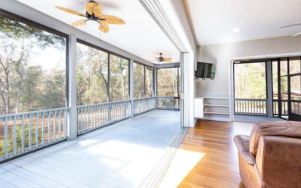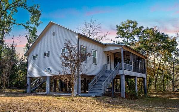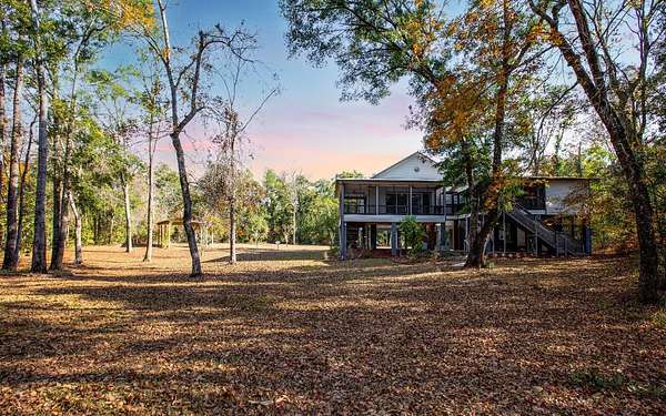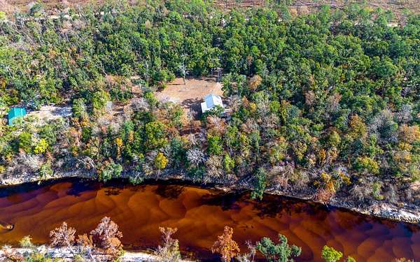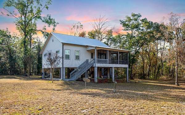 LISTED BELOW RECENT APPRAISAL VALUE! This beautiful river front home was built in 2016 and sits on 4.61 acres in a gated community just 2 miles from Gibson Park's Suwannee River public boat ramp. The main home offers 2 bedrooms, 1 bath, hardwood floors, and an open living area with floor-to-ceiling glass doors. Two full walls of glass retracts behind the exterior walls, opening the living room to the wraparound screened deck/porch. The custom kitchen includes granite countertops, stainless steel appliances, brand-new dishwasher, and a large pantry. The Primary bedroom features a large walk-in closet and bathroom with double vanities and a tiled shower. Connected by the screened porch/deck, a guest cottage was added in 2023, giving you 2 more additional rooms and a full bath, ideal for visitors or multigenerational living. Exterior features include an elevator, outdoor shower, fire pit area, a large screened patio with half bath, oversized 2-car carport, GenX generator, water softener, pole barn, shed with electricity, and RV hookup. RV hookup wiring is present; breaker was redirected for the elevator and can be reconnected. Located approx. 15 minutes from I-75 and I-10. If you've been looking for your peaceful escape, come take a look today!