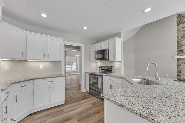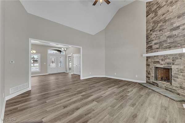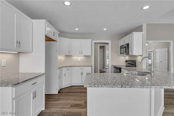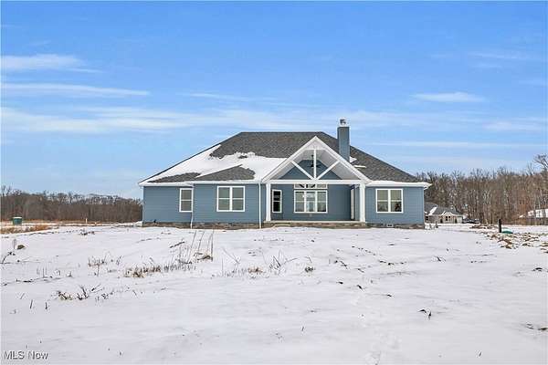 Be the first to call this brand-new 4-bedroom ranch home in Valley City your own. Built by Mason Builders and nearing completion, this 2,375 sq ft modern ranch sits on a peaceful 2.1-acre lot in scenic Medina County-ready for a quick move-in and designed for today's lifestyle. Step inside the open-concept Great Room featuring a striking stone fireplace and picture windows framing wooded backyard views. The kitchen impresses with granite countertops, a spacious island bar, breakfast area, and extensive cabinetry that blends functionality with modern style. The flexible fourth bedroom offers the perfect space for a home office or study. The owner's suite is a private retreat with a large walk-in shower, dual vanities, and generous closets. Two additional bedrooms share a convenient Jack-and-Jill bath. A full basement-already plumbed for a future bath-invites endless possibilities for expansion or recreation. The oversized 3-car garage provides ample storage and workspace for hobbies or equipment. Located in the desirable Buckeye School District, this new build combines peaceful country living with quick access to Valley City shops, parks, and major routes. Construction is wrapping up soon-move in and start fresh in your new home at 7662 Springfield Drive, Valley City.