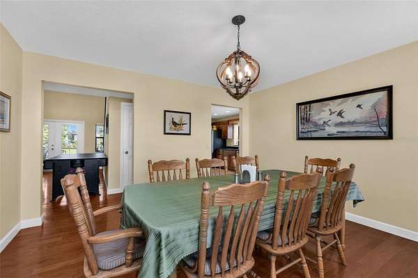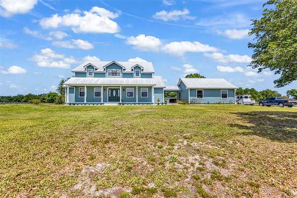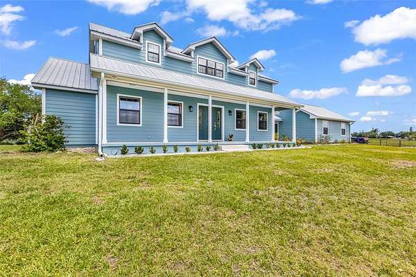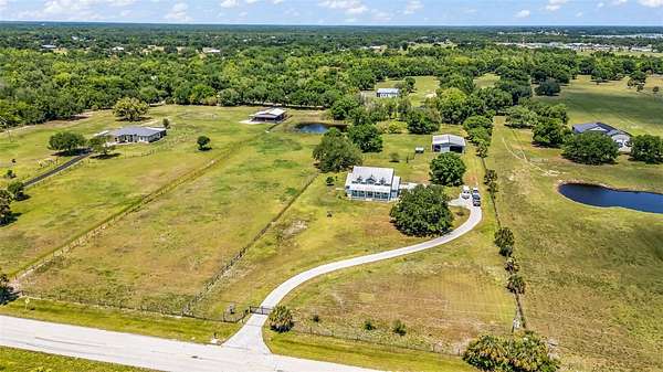A rare blend of country charm, modern upgrades, and equestrian-ready living—this custom-built, elevated home on a stem wall in Flood Zone X delivers durability, thoughtful design, and peace of mind on 5 fully fenced and cross-fenced acres with mature oak trees and a scenic rear pond. Built with solid block construction , lap siding and a long-lasting metal roof. The home includes PGT double-pane windows, French doors, a reinforced overhead garage door, and Astro-Guard hurricane protection for lower-level windows and screened lanai openings. A side-load garage connects via a covered breezeway, and a transfer switch at the main panel allows for a portable generator backup for essential systems if the need arises.
