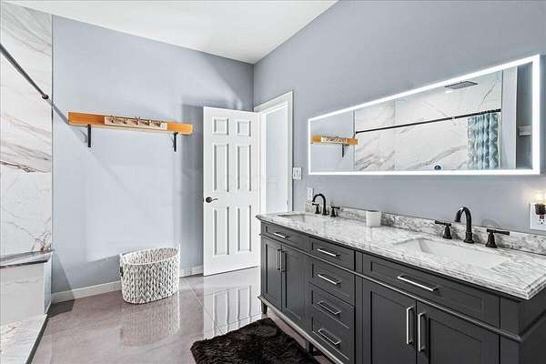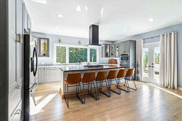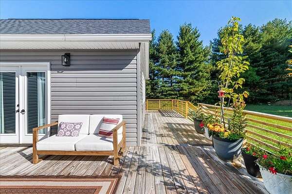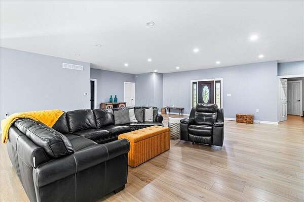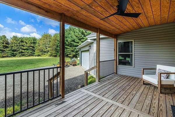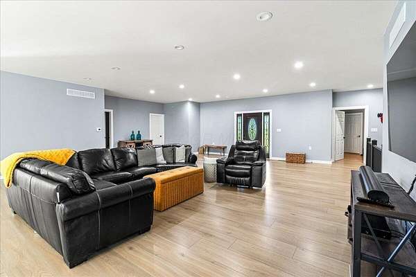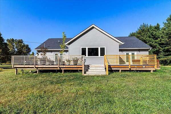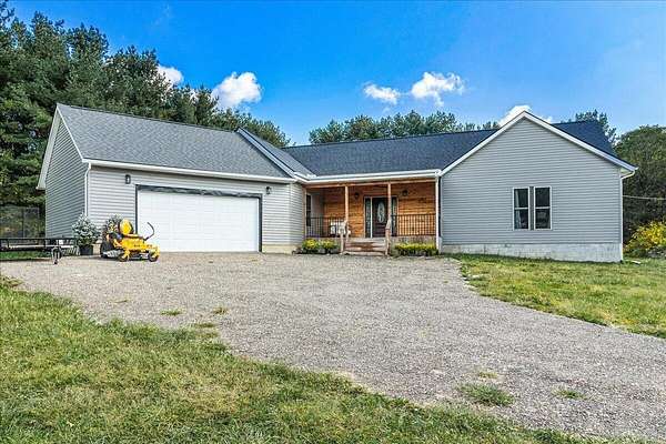Built in 2023, this property offers the space and privacy of country living with the convenience of a move-in ready home. Situated on 2.2 acres, it features 3,607 sq ft of finished living space, including 3 bedrooms and 3 full bathrooms, designed for both comfort and function. With all appliances, mechanicals, and finishes new, this home is ready for its next owner. The main level includes 2,461 sq ft with an open layout ideal for daily living and entertaining. The kitchen is anchored by a 9-foot walnut island, stainless-steel appliances, and oversized windows that fill the space with natural light while showcasing views of the property. The kitchen flows seamlessly into the dining and living areas, creating a bright and inviting space. The primary suite includes a large bedroom with room for a sitting area, a walk-in closet, and a bathroom with dual vanities, modern fixtures, a custom walk-in shower, and a backlit mirror. Additional bedrooms are generously sized with ample closet space and natural light. A secondary full bathroom also features sleek finishes with a backlit mirror, while the third full bathroom offers modern tile and fixtures. The finished lower level adds 1,146 sq ft with a recreation room, bonus rooms, and storage areas, providing flexible space for hobbies, fitness, or guests. Outside, there is plenty of room to enjoy the outdoors. The acreage provides space for gardening, outdoor living areas, or simply relaxing in a private setting. Make this home your own and envision how you could use both the space inside and the yard to fit your lifestyle. With its spacious open layout, oversized bedrooms, and modern bathroom finishes, this 2023-built home combines the comfort of updated living with a private country setting. Schedule your showing today!