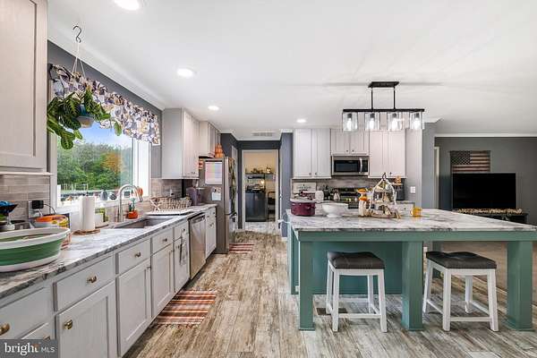 Wake up each morning to breathtaking views of not just one, but three different mountains-right from the front of your home. This 3-bedroom, 2-bath retreat is designed for both comfort and connection, with an open floor plan that brings the kitchen, living room, and family room together for effortless living and entertaining. The kitchen features sleek quartz countertops, perfect for preparing meals while still being part of the conversation. In the family room, a warm fireplace is flanked by custom bookcases-one of which opens to reveal a hidden room, an unexpected touch of magic for extra storage or a secret getaway. The spacious primary suite is your sanctuary, complete with a garden tub for soaking after a long day. Two additional bedrooms provide plenty of space for family, guests, or a home office. Step outside and experience the lifestyle this property offers: 2.68 acres with a fenced area and its own animal building, ready for your horses. Gather around the fire pit with friends under the stars or host summer barbecues on the large back deck. For travelers, the full RV hookup-with water, sewer, and 50-amp electric-makes welcoming guests or setting off on adventures easy. Whether you're dreaming of a small homestead, a private mountain-view retreat, or a place to entertain and make memories, this home has it all. Call to schedule your appointment today!