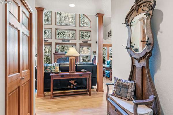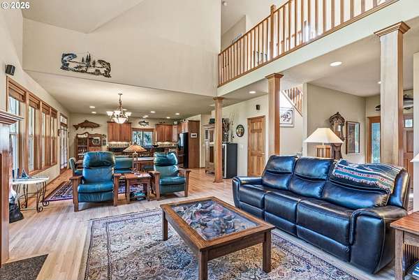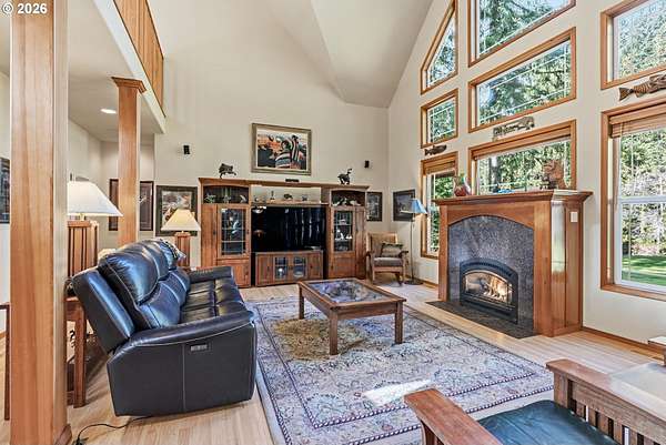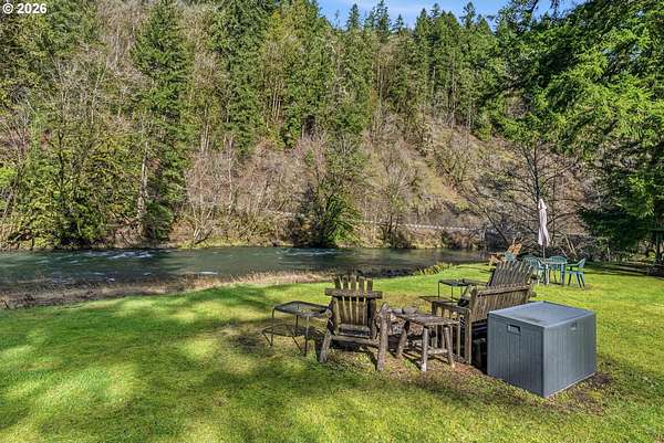 First time on the market! This one-owner, custom-built 2001 riverfront home offers nearly 3,300 sq ft of thoughtfully designed living on 5.17 acres with 375 feet of Kalama River frontage. Impeccably maintained, the home features 3 bedrooms, 2.75 baths, a wall of windows overlooking the river, abundant natural light, and cozy gas fireplace. Enjoy hardwood floors (refinished 2 years ago), granite countertops, walk-in pantry, and all appliances included. The stunning primary suite boasts river views, deck access, jetted tub, dual-head shower, and dual closets. Relax upstairs or down, or create your dream space in the large studio/flex room. Exterior updates include fresh paint, Hardi-plank siding, and Trex decking. Additional highlights: 3-car garage with large sink, covered RV parking with hookups and option to purchase mostly furnished. One of the best fishing spots on the Kalama River is just steps from your back deck-you peaceful riverfront retreat awaits.