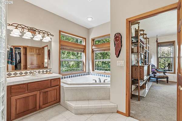 - Ceiling Fan, Hardwood Floors, Jetted Tub, Skylight, Tile Floor, Vaulted Ceiling, Vinyl Floor, Wallto Wall Carpet, Washer Dryer