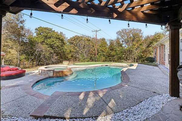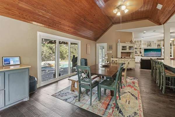 Tucked away on 2.046 acres of lush, heavily treed countryside, this stunning 3,825 sq ft custom home blends luxury, recreation, and tranquility just minutes from Palmer and located within some of Ellis County's most sought after school district. Completely updated for modern living, the home features all bathrooms remodeled to the studs in 2023, all new energy efficient windows installed in 2023, and an all-new, fully customized butler's pantry of your dreams, perfect for storage, prep, and elevated entertaining. vWith 4 spacious bedrooms, 3 beautifully renovated full bathrooms, and an open concept floor plan, every detail is designed for effortless living. Step inside to soaring ceilings, abundant natural light, and seamless flow between the gourmet kitchen, the new butler's pantry, expansive living areas, and outdoor retreats. The heart of the home opens directly to your private backyard oasis a sparkling swimming pool, a professional-grade putting green, and direct access to one of the deepest, swimmable sections of Red Oak Creek ideal for fishing, kayaking, or cooling off on summer days. A detached 1,200 sq ft shop offers ample space for projects, storage, or your dream home gym. The sprawling grounds provide unmatched privacy, mature trees, and room to roam all while being a short drive to Dallas amenities.