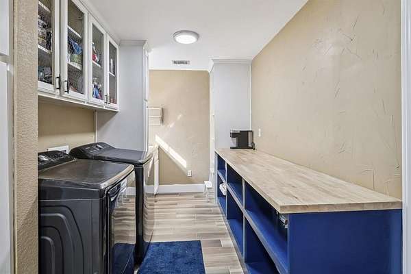 - Built-In Refrigerator, Cooktop, Dishwasher, Electric Cooktop, Garbage Disposer, Refrigerator, Washer