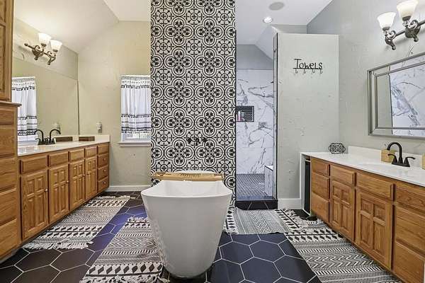 - Ceramic Tile, Concrete, Tile, Wood