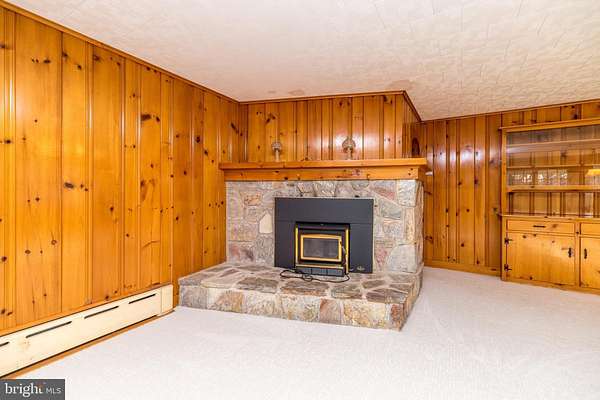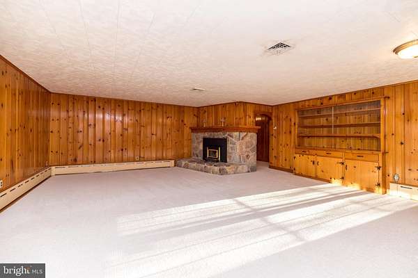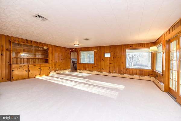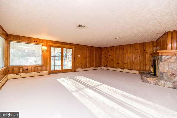 Sought-after one-floor living awaits in this well-maintained 3-bedroom, 2-bath ranch home set on 6 open and tree-lined acres in beautiful Upper Bucks County. The upgraded kitchen features granite countertops, stainless steel appliances, and new flooring, offering both style and functionality. The spacious living room showcases a striking stone fireplace with a wood-burning insert and opens through sliding doors to a covered patio overlooking the private rear yard, perfect for relaxing or entertaining. The primary bedroom includes a charming bay window and an en-suite bath with tile flooring, while two additional bedrooms and a full hall bath complete the main level. The full basement provides exceptional bonus space, including a finished family room currently used as an exercise room, highlighted by a second stone fireplace. With outside access and ample room for hobbies, storage, or future expansion, the lower level offers endless possibilities. Additional features include a newer boiler, central air, and generator hookup for peace of mind. Surrounded by open land and mature trees, the property is ideal for gardening, animals, or simply enjoying the outdoors. Conveniently located near Nockamixon State Park, the Delaware River, and the canal towpath, this home offers the perfect blend of privacy, recreation, and the best of Upper Bucks County living.
