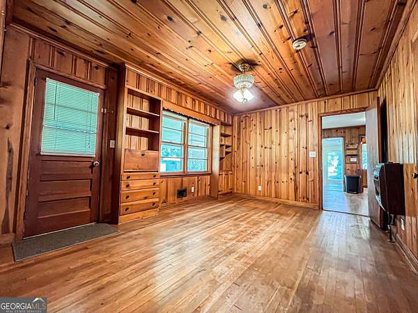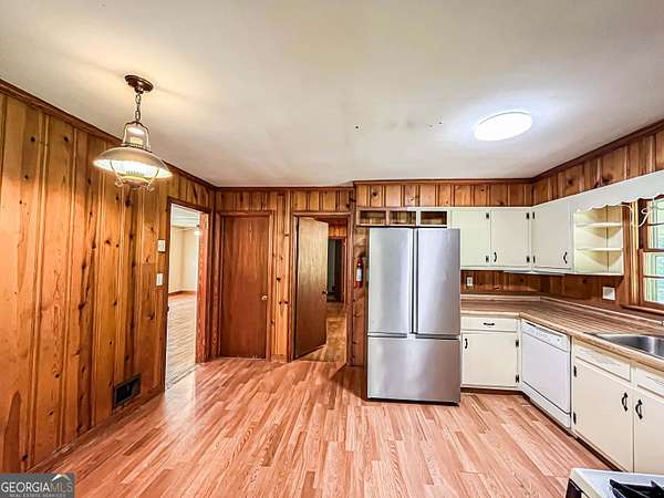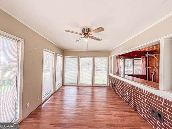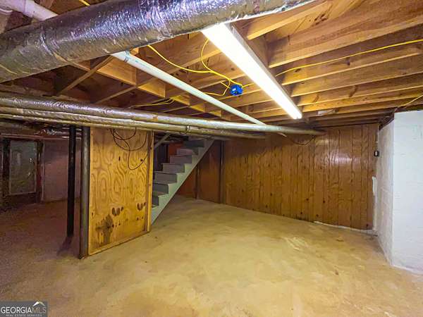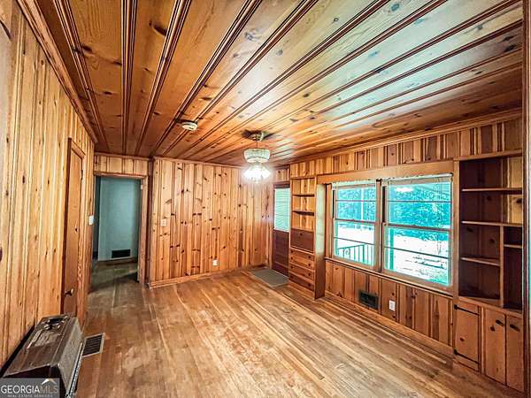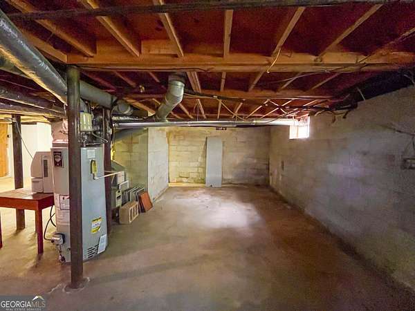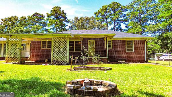 Nestled on a spacious 2-acre lot in desirable Henry County with access to Locust Grove schools, this charming 3 bedroom / 1 bathroom all-brick ranch offers incredible potential and room to make it your own. With no HOA and an abundance of outdoor space, this property is perfect for those seeking privacy, freedom, and flexibility. The home features a rear-attached carport, a fenced-in backyard, and a full unfinished basement with endless possibilities. While it could use a little TLC, it's the perfect opportunity for someone ready to bring their vision to life. Step into the cozy family room with a fireplace that creates a warm and inviting atmosphere. The kitchen includes a breakfast area, butcher block countertops, and a walk-in butler's pantry/serving station that conveniently houses the laundry hookups. A passthrough window connects this area to the stunning sunroom-ideal for morning coffee or afternoon relaxation. A separate living room offers built-in shelving, a wall furnace, and direct access to the backyard. Two comfortably sized bedrooms on the main level share a full hallway bathroom for easy access. Downstairs, the full unfinished basement is a blank canvas-whether you're dreaming of a guest suite, media room, workshop, or keeping it for generous storage. One finished bedroom is already in place, offering immediate flexibility. With its solid bones, expansive lot, and unbeatable location, this home is a rare find that's just waiting for the right touch to truly shine.