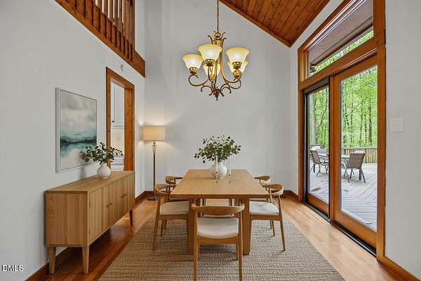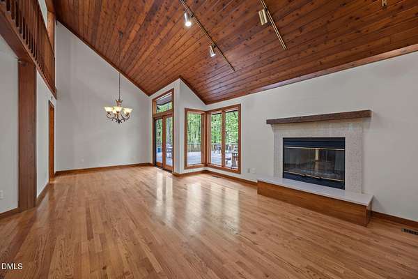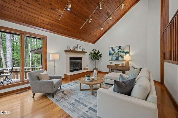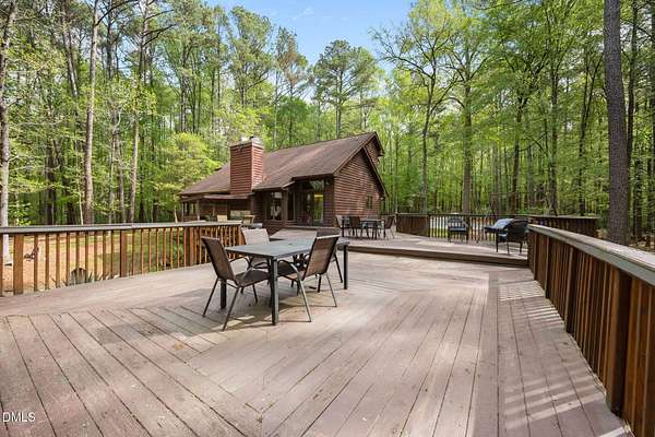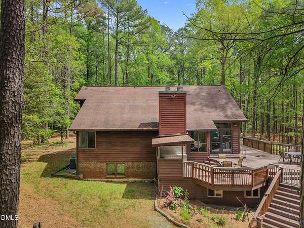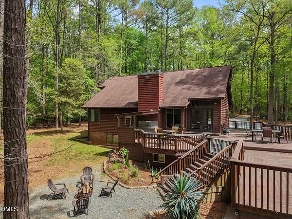 Tucked away on 5.3 acres of peaceful, wooded surroundings, this 3-bedroom, 3.5-bath home offers a private retreat just 5-10 minutes from downtown Pittsboro! A winding setting with a trail leading down to the river creates a rare opportunity to enjoy nature right outside your door. Inside, the living room features soaring vaulted ceilings with exposed wood beams and a cozy fireplace, bringing warmth and character to the heart of the home. The main-level primary suite provides convenience and comfort, while the second floor offers two additional bedrooms and a versatile loft space--ideal for a reading nook, office, or additional lounge area. Step outside to a sprawling deck designed for entertaining, complete with multiple areas to gather, relax, and take in the wooded views. Whether hosting or enjoying a quiet morning, the setting delivers a true sense of escape. The expansive unfinished basement (1,936 sq ft) offers incredible potential, with multiple flex spaces ready to be customized to fit your needs--whether for hobbies, storage, or future expansion. A unique blend of privacy, natural beauty, and proximity to Pittsboro--this property is ready to be enjoyed as-is or taken to the next level!