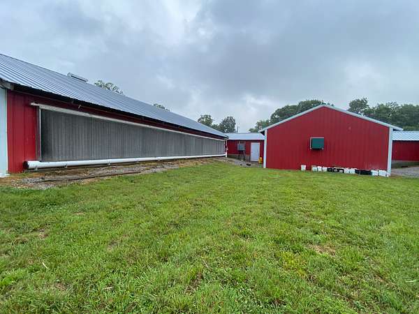 The Rigsby Gap Road parcel includes two 42x452 breeder houses built in 2012, a spacious double-wide mobile home, and around 20 acres of mostly open land. The second parcel on Doc Beck Lane offers two 42x452 houses built in 2011, two older, non-operational barns (currently used for parts), a single-wide mobile home, and 12 additional acres.