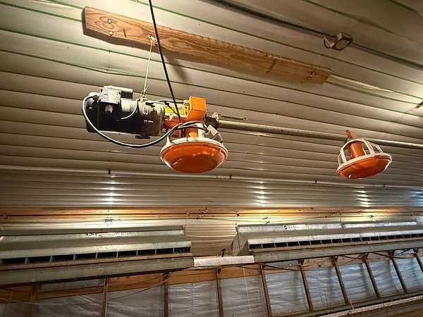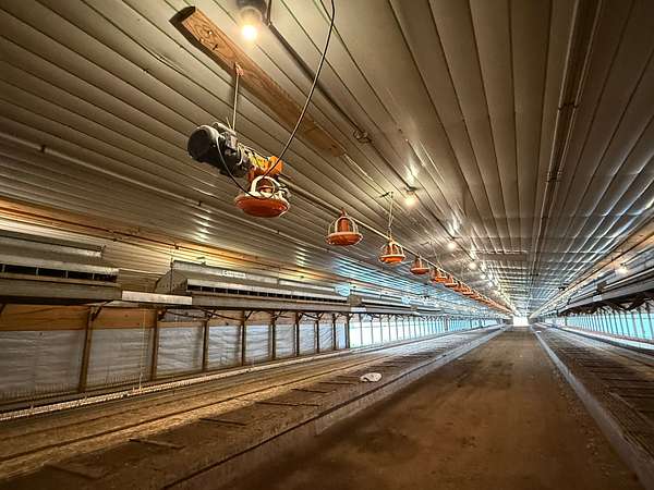Each poultry house includes a 42x440 bird area and 12-foot egg collection rooms. Equipment includes Big Dutchman feeding systems, Shenandoah nest boxes, and Rotem Platinum Plus controllers. Water is sourced from both well and city lines. Koch Foods provides integrator support with a pay structure of $0.60 per dozen eggs and $0.16 per cull, along with bedding materials.