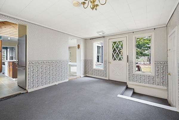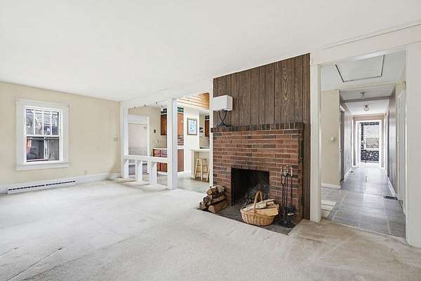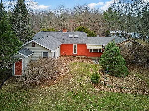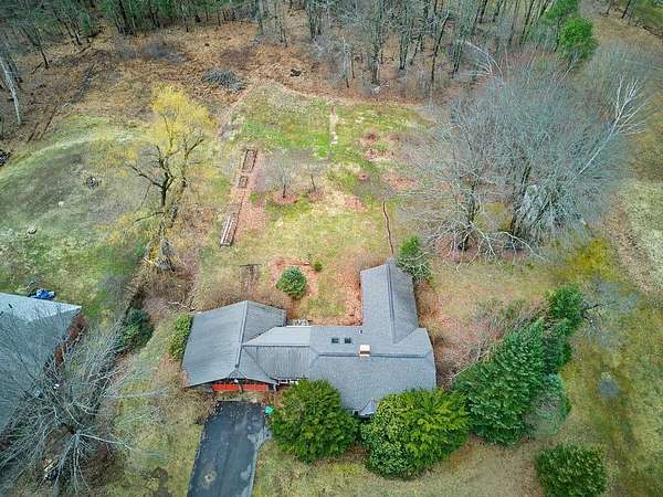 Peeking out behind a row of mature landscaping is a charming ranch style home located on 25 glorious acres. The seller was an avid gardener in his day, and you can see the blueberry plants, grape vines, and raised garden beds. There is even a good sized outbuilding with a chicken coop attached. This well loved home has a surprisingly open layout feeling very spacious. The kitchen features updated appliances, and the bathroom has had a renovation. While there is an opportunity to install some new flooring and some paint, there are great bones here. Gorgeous brick wood burning fireplace in the large living room. Rustic wood work to be found throughout. Large 2 car garage attaches directly to the family room. A solid home like this on 25 acres is a rare find! Lots of possibilities. Quick closing is possible. Seller is an active Real Estate Agent. Welcome Home!