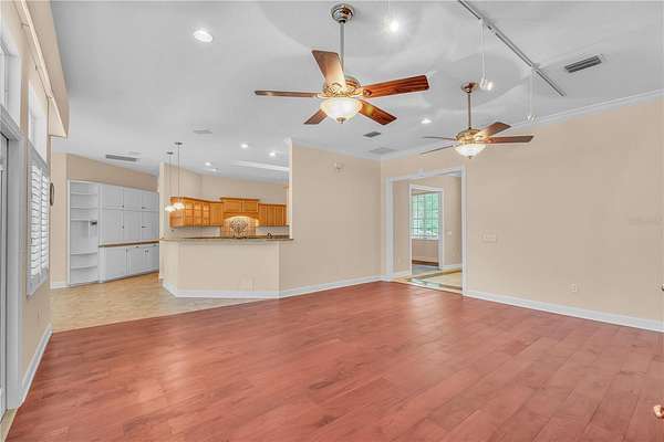 - Built-In Features, Ceiling Fans(s), Primary Bedroom Main Floor, Solid Surface Counters, Split Bedroom, Walk-In Closet(s)