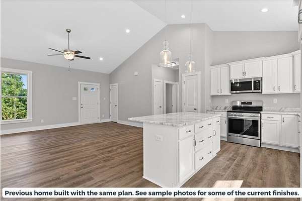 This charming abode, set on 2.9 acres , offering the perfect blend of comfort, tranquility, and natural beauty. Step inside and discover the Laurel Creek , a meticulously designed home boasting 3 BEDROOM 2 BATHROOM home, thoughtfully arranged to provide ample space for relaxation and rejuvenation. The airy and inviting LIVING spaces are adorned with tasteful finishes, creating an atmosphere of warmth and elegance. The KITCHEN features GRANITE counters, MERILLAT CABINETS, a central ISLAND & a PANTRY. LVP FLOORING runs throughout the main living spaces. The PRIMARY BEDROOM is privately located on one side of the home, featuring an EN SUITE BATHROOM with a LINEN CLOSET & a WALK-IN CLOSET. The other 2 bedrooms are located on the other side of the home that share a full bath. Slated for completion April 2026.
