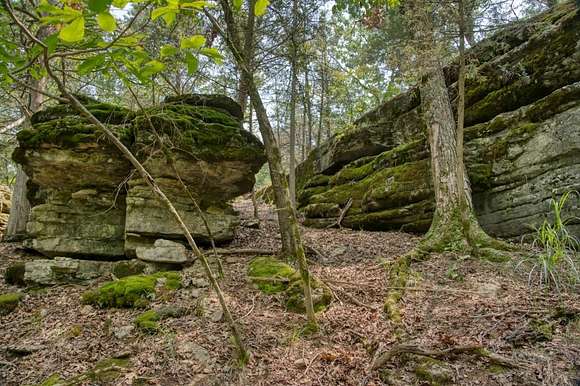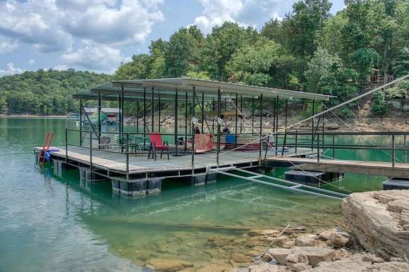 15+ acres with a cabin and a private boat dock! These larger acreages with docks have gotten hard to find but this one is ready for your dream home...or maybe just some weekend fun! This huge private ridge top is a fantastic home site with a great lake view, gradually sloping down to cliffs, boulders, the lake cabin, and then to the private dock. This land is full of fun exploration possibilities! The cabin, built right next to the Corps of Engineers take-line, is just a short, easy walk from the dock! Lots of windows and wood accents give the cabin a very homey and fun feel. This property has just under 400' of lake frontage that includes the entire back of the cove. It's easy and quick to get to the main arm of the lake but you will also appreciate the protection, quiet, and clear water this cove provides. Play with friends and family on the 12'x32' swim platform and store your boats in the 24x8 and 28x10 slips!