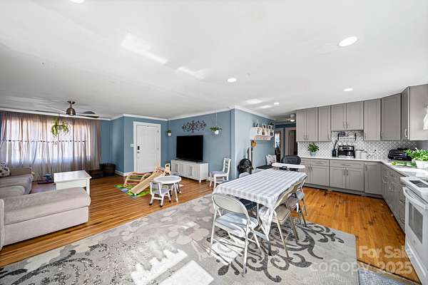 Step into a home that offers more than just square footage...where fresh updates, flexible rooms, and privacy meet in harmony. This 2-bedroom, 1-bath home with office/laundry room sits on a generous 2.66 acre lot surrounded by trees, providing a serene escape to the heart of Mount Pleasant. The open-concept main level features hardwoods, an updated kitchen with contemporary gray cabinets, stylish wallpapered backsplash, and an expansive eat-in area ideal for family gatherings. The ground level entrance basement is full of potential-unfinished but framed, with its own bath and multiple rooms, ready to become a gym, workshop, or rec space. With a covered patio, large deck (that needs some love), detached storage shed, and backyard overlooking a wooded backdrop, this home is a canvas for life's next chapter. If you love a good project, this home would be perfect for you. Several updates have already been started and are waiting for you to complete them. Schedule a private tour today and see what potential feels like in person!